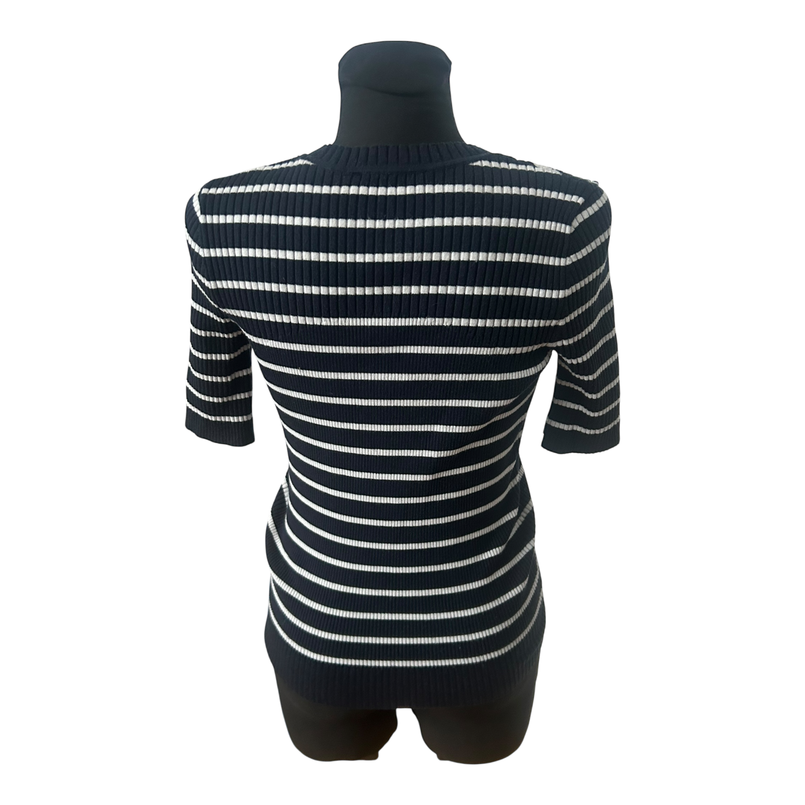 Esprit Damen Strickshirt Halbarm Gr M Dunkelblau Weiß Gestreift Viskosemix