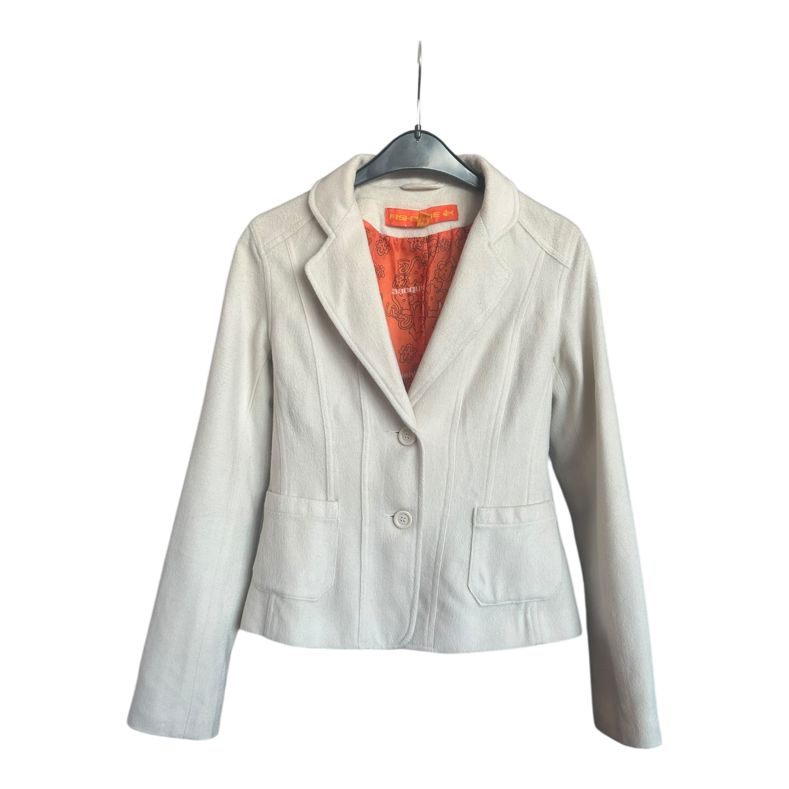 🌟 Fishbone Damen Blazer 36 – Ecru, Polyacryl, Elegant