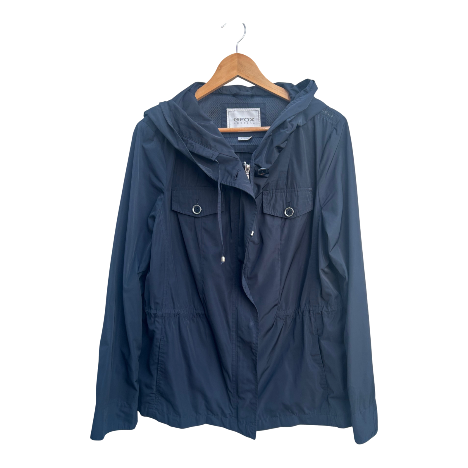 Geox Damen Jacke Gr 42 Dunkelblau atmungsaktiv Kapuze Freizeit leicht elegant