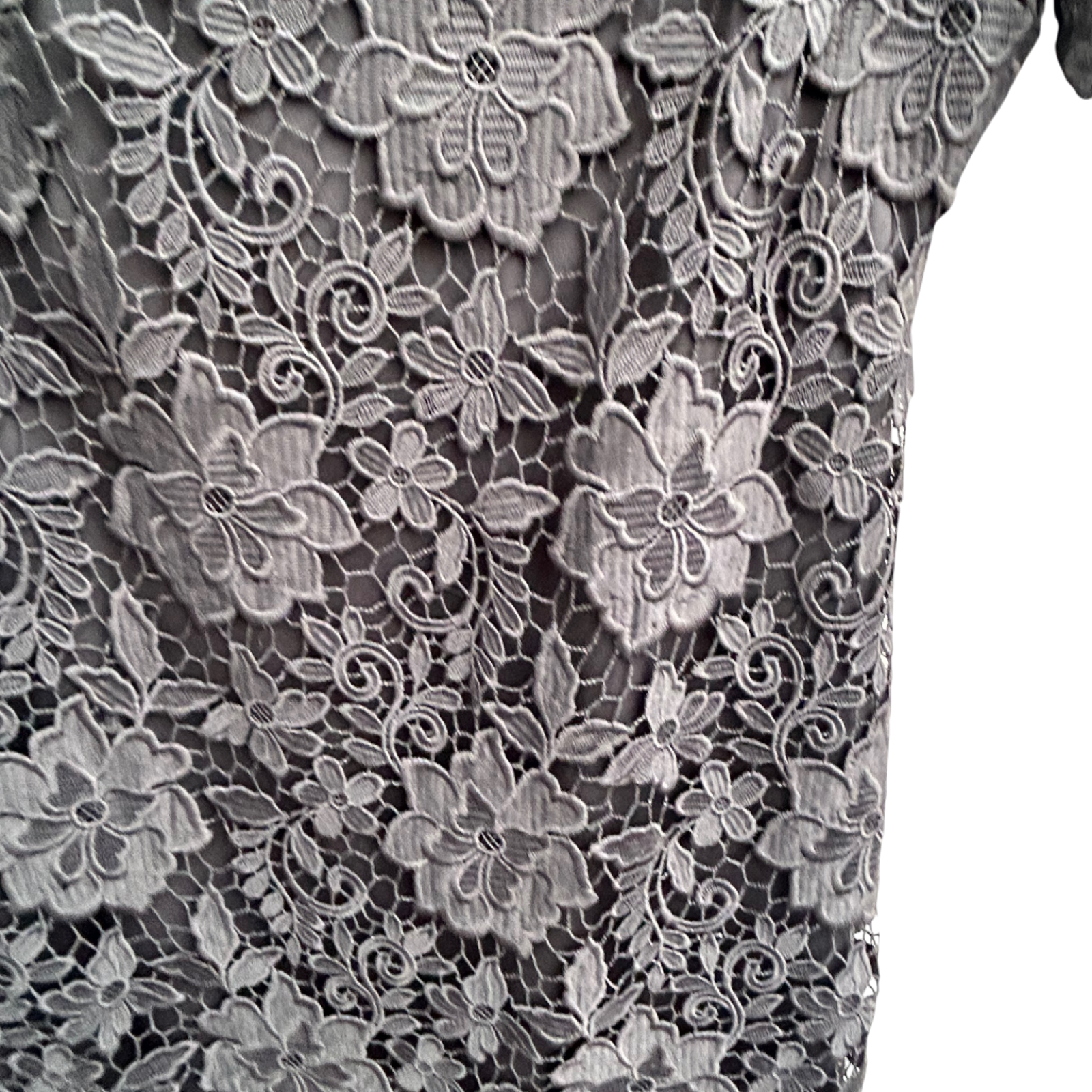 Ein elegantes Kleid von Gina Bacconi in Größe 36, komplett aus wunderschöner floraler Spitze gefertigt. Die Farbe ist ein edles Grau und sowohl das Obermaterial als auch das Futter bestehen aus 100% Polyester. Das Kleid hat kurze Ärmel, einen rückseitigen Reißverschluss sowie einen kleinen Knopf am Nacken. Die Brustweite beträgt 44 cm, die Taille misst 36 cm und die Länge liegt bei 94 cm. Es wirkt hochwertig und ist ideal für besondere Anlässe wie Abendveranstaltungen, Feiern oder festliche Events ✨. Das Kleid befindet sich in sehr gutem Zustand und wurde schonend gepflegt. Handwäsche empfohlen.
