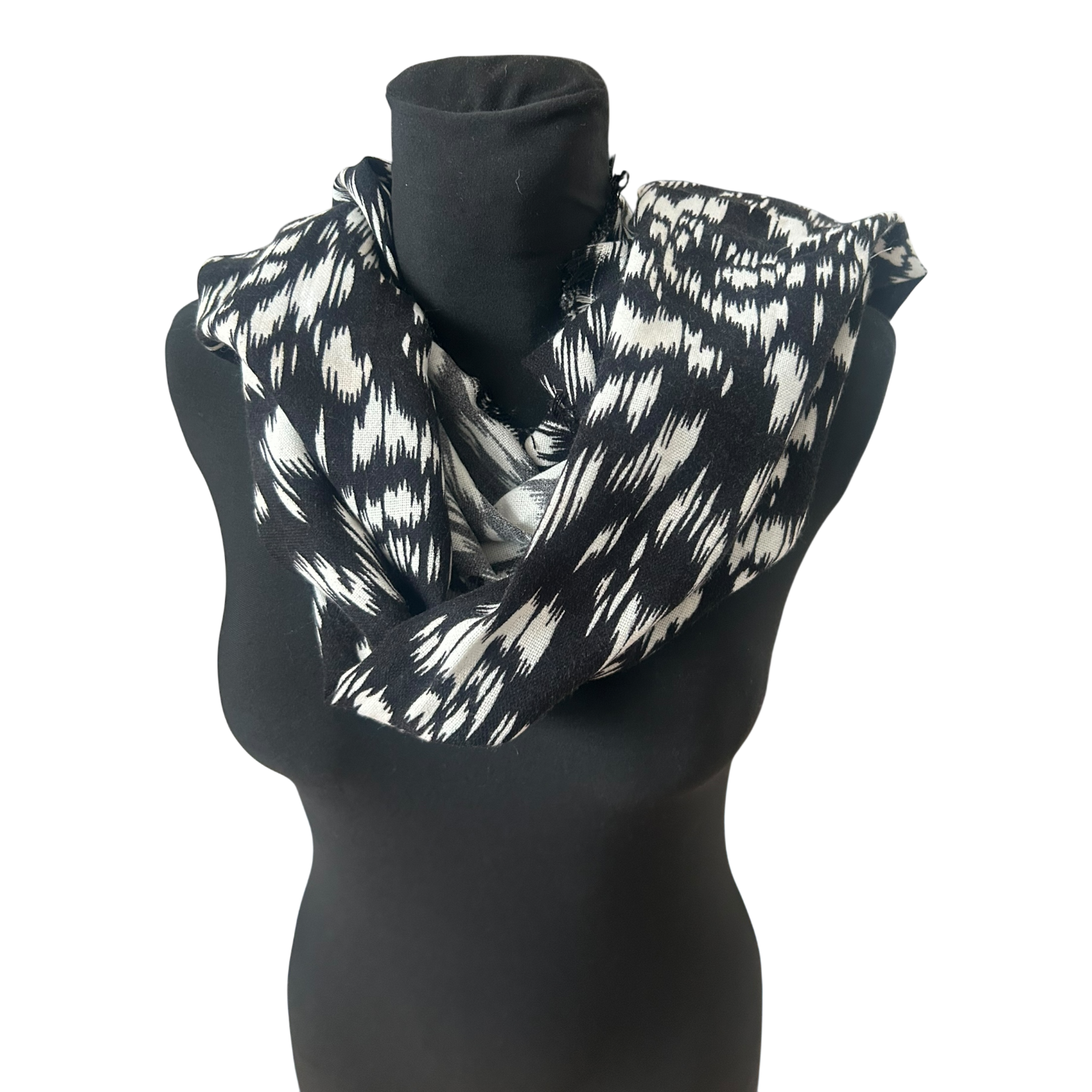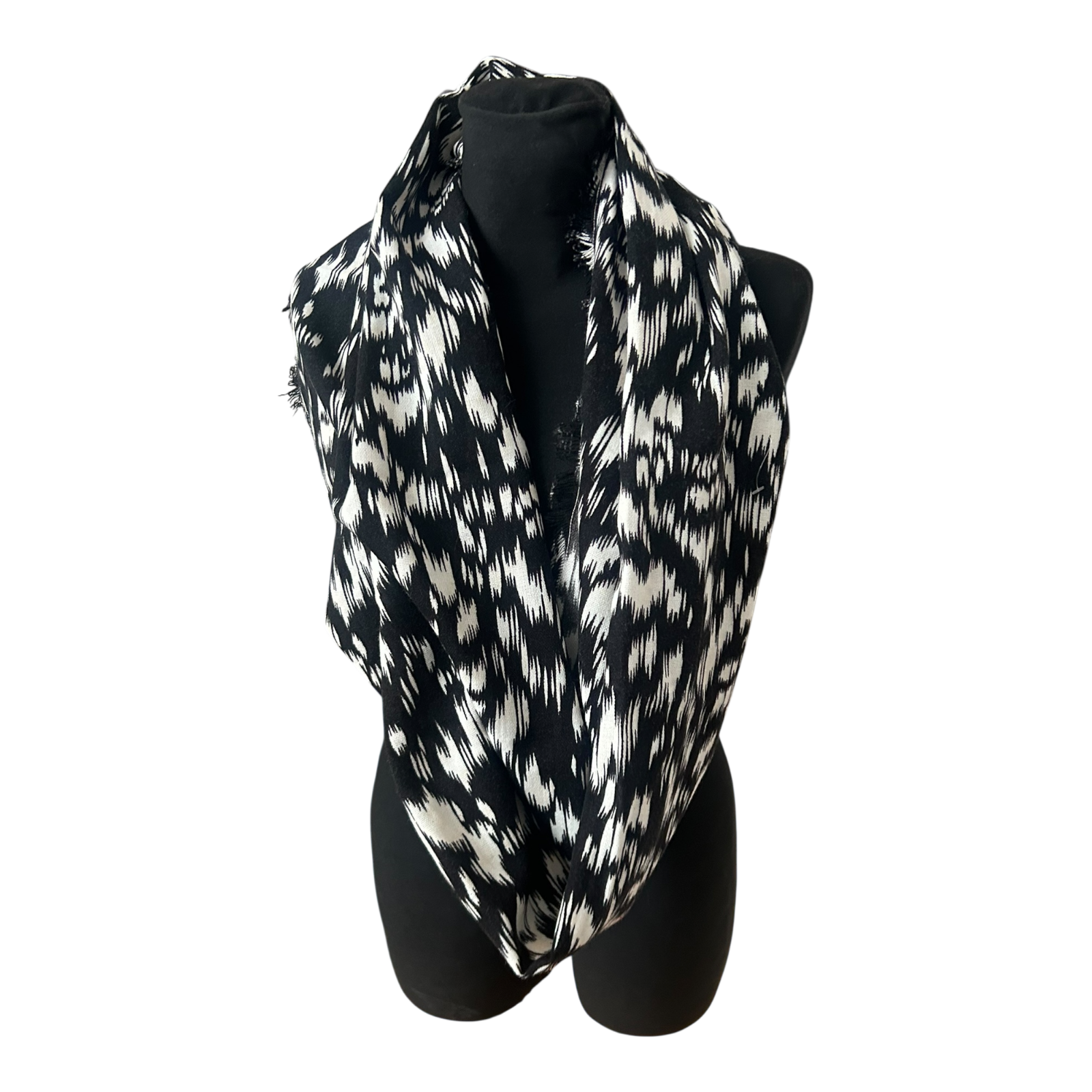 Sehr schöner Loop-Schal von Gina Benotti mit modernem abstraktem Muster in Schwarz und Weiß. Der Schal ist als geschlossener Loop gearbeitet und lässt sich unkompliziert tragen – einfach überziehen und fertig. Das grafische Dessin wirkt zeitlos und passt sowohl zu schlichten als auch zu auffälligeren Outfits.