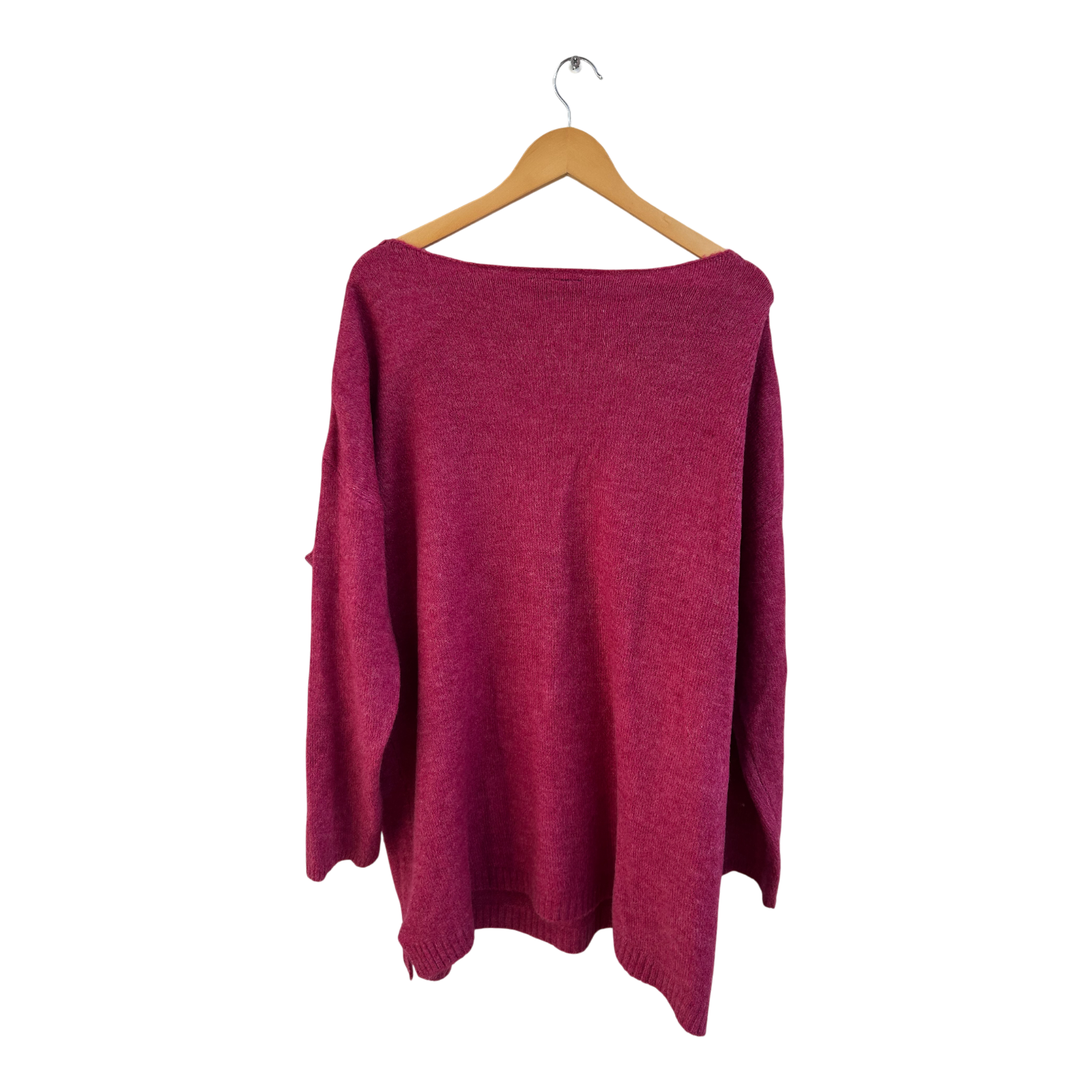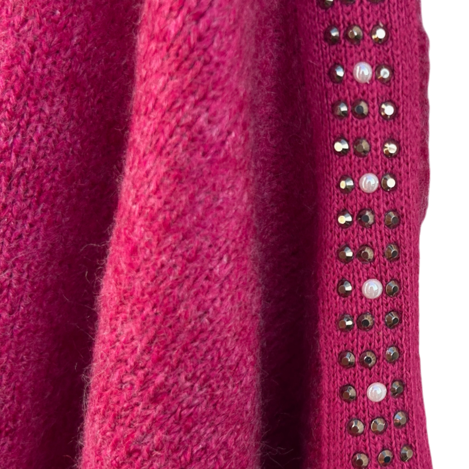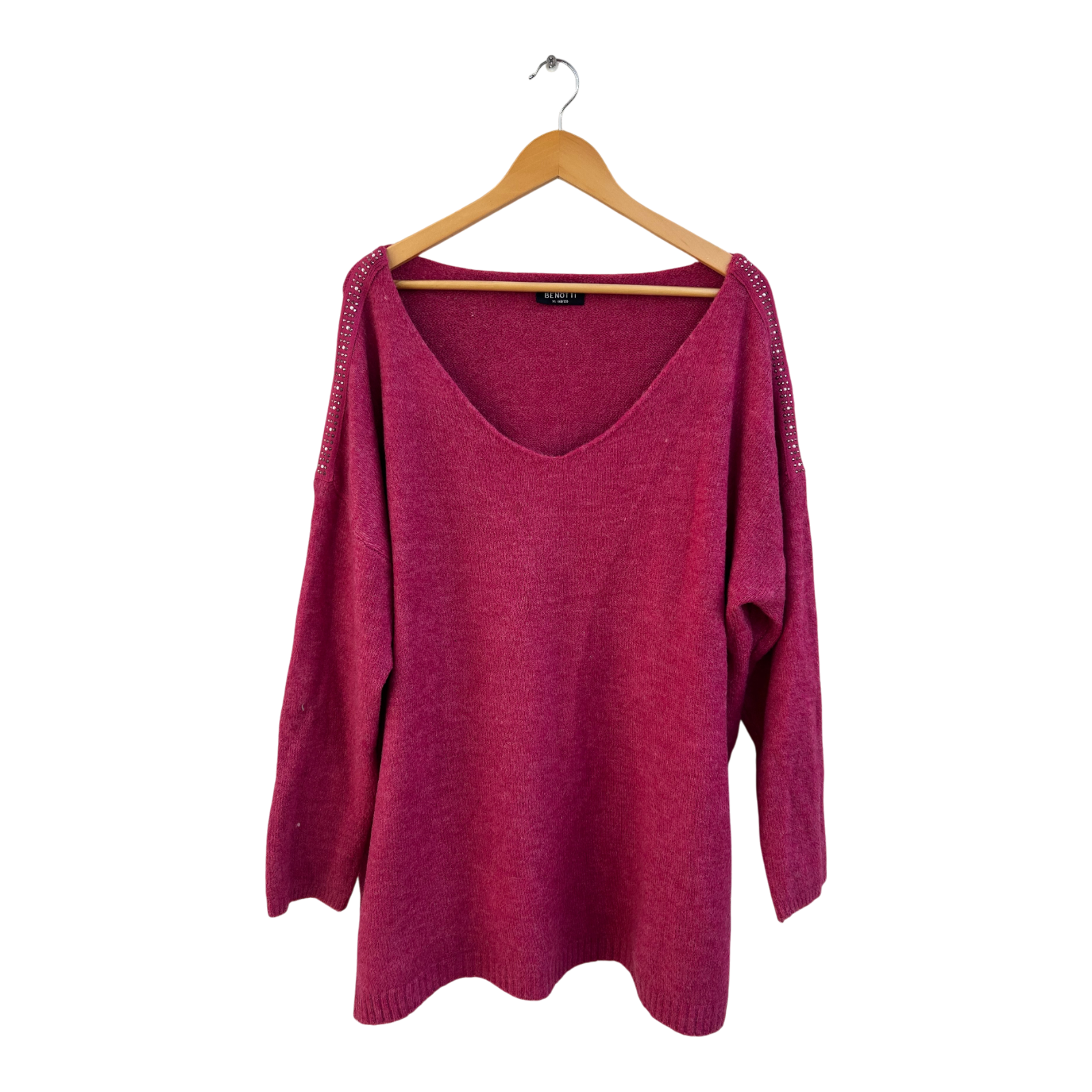 Gina Benotti Pullover Damen Gr XL Pink Strass V-Ausschnitt Feinstrick Elegant