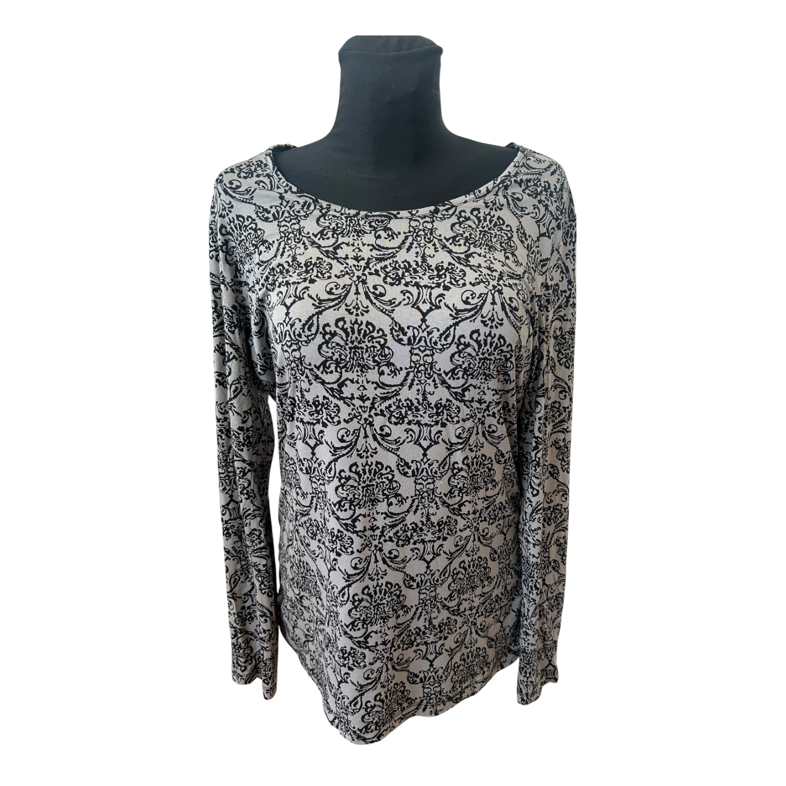 Gina Benotti Shirt Damen Gr L Grau Schwarz Ornament Langarm Viskose