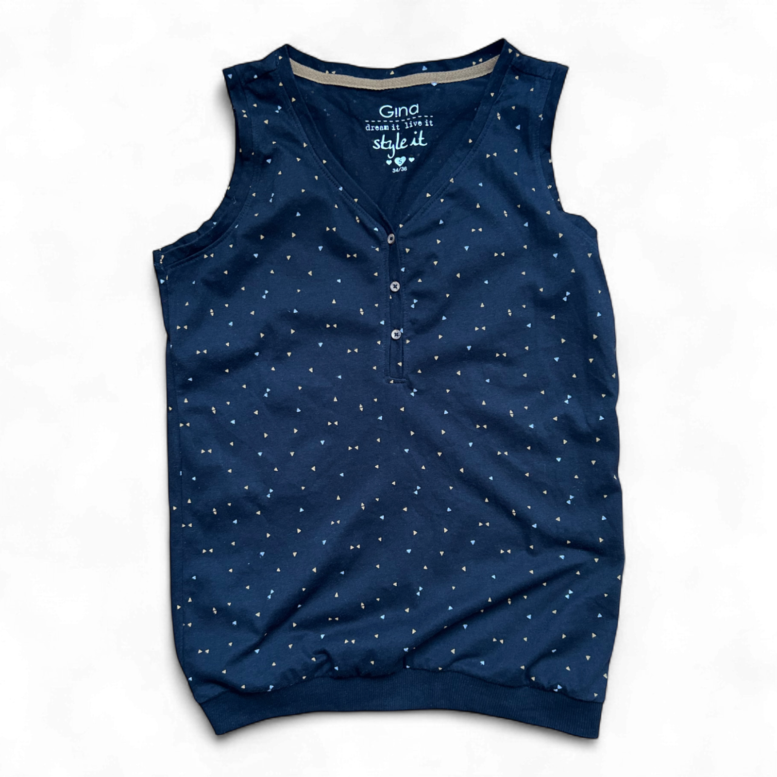 Gina Damen Top S Schwarz Bio Baumwolle Muster Ärmellos Freizeit