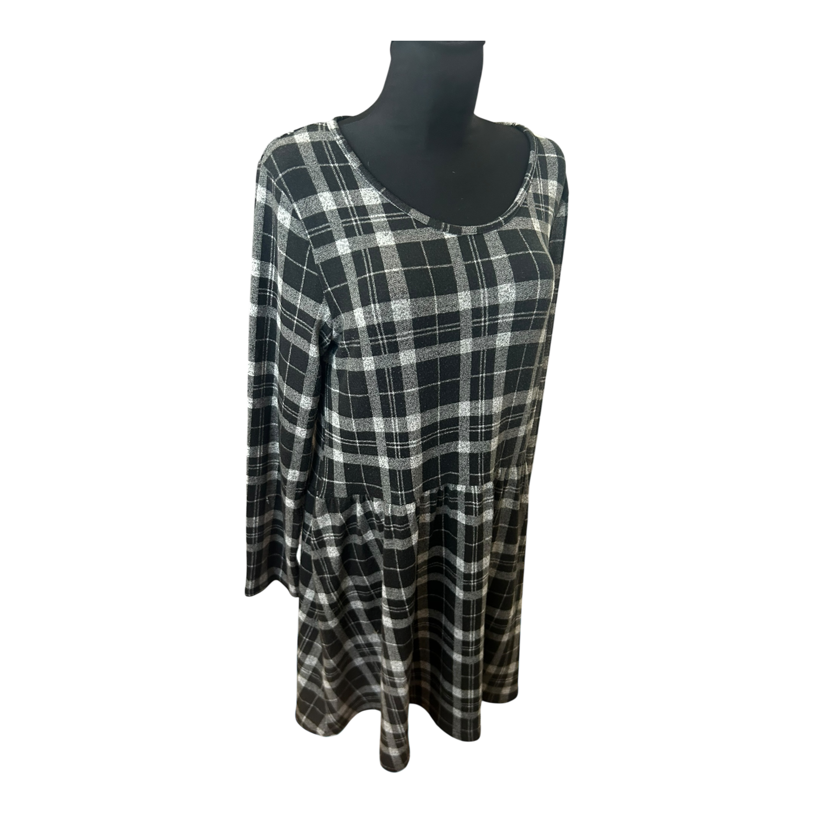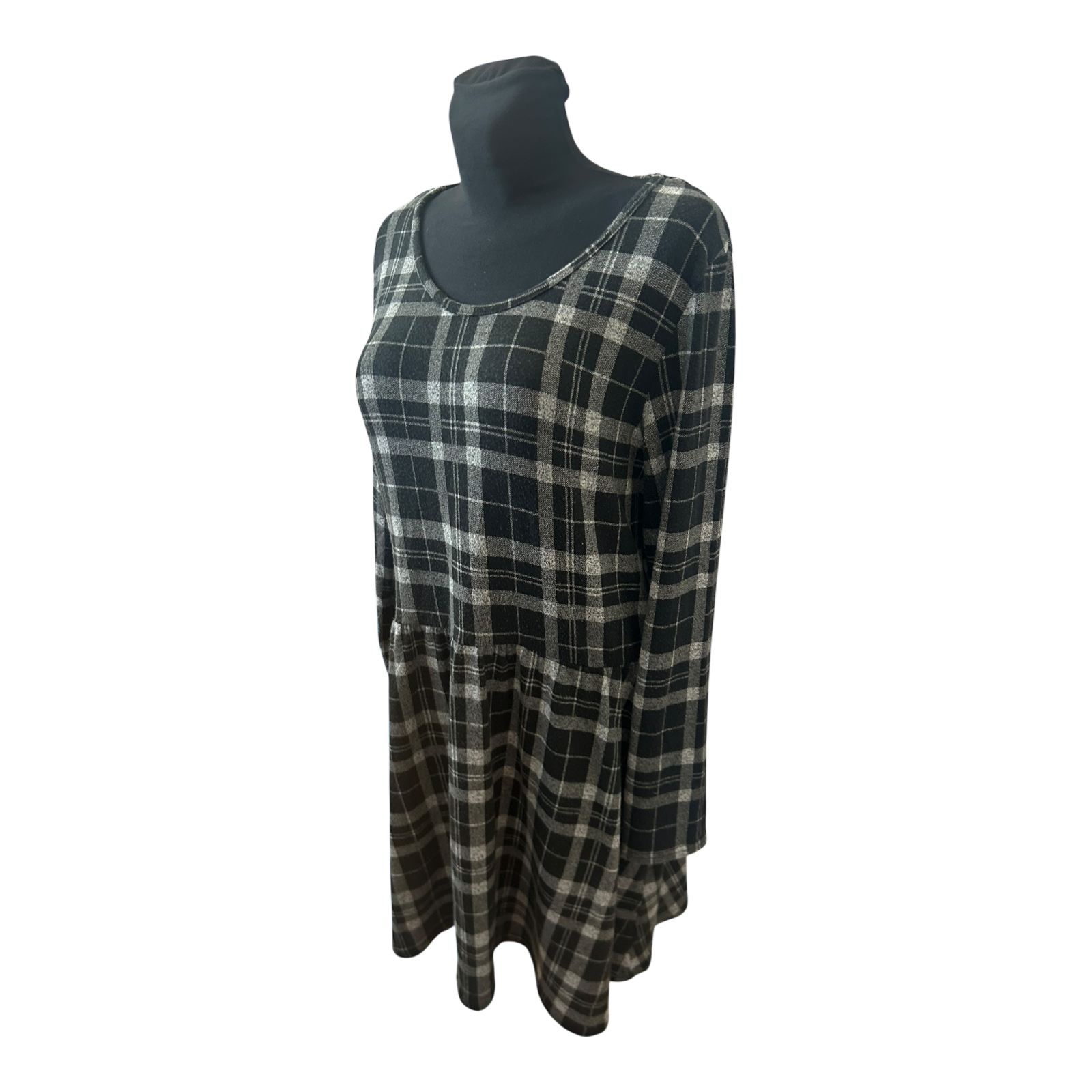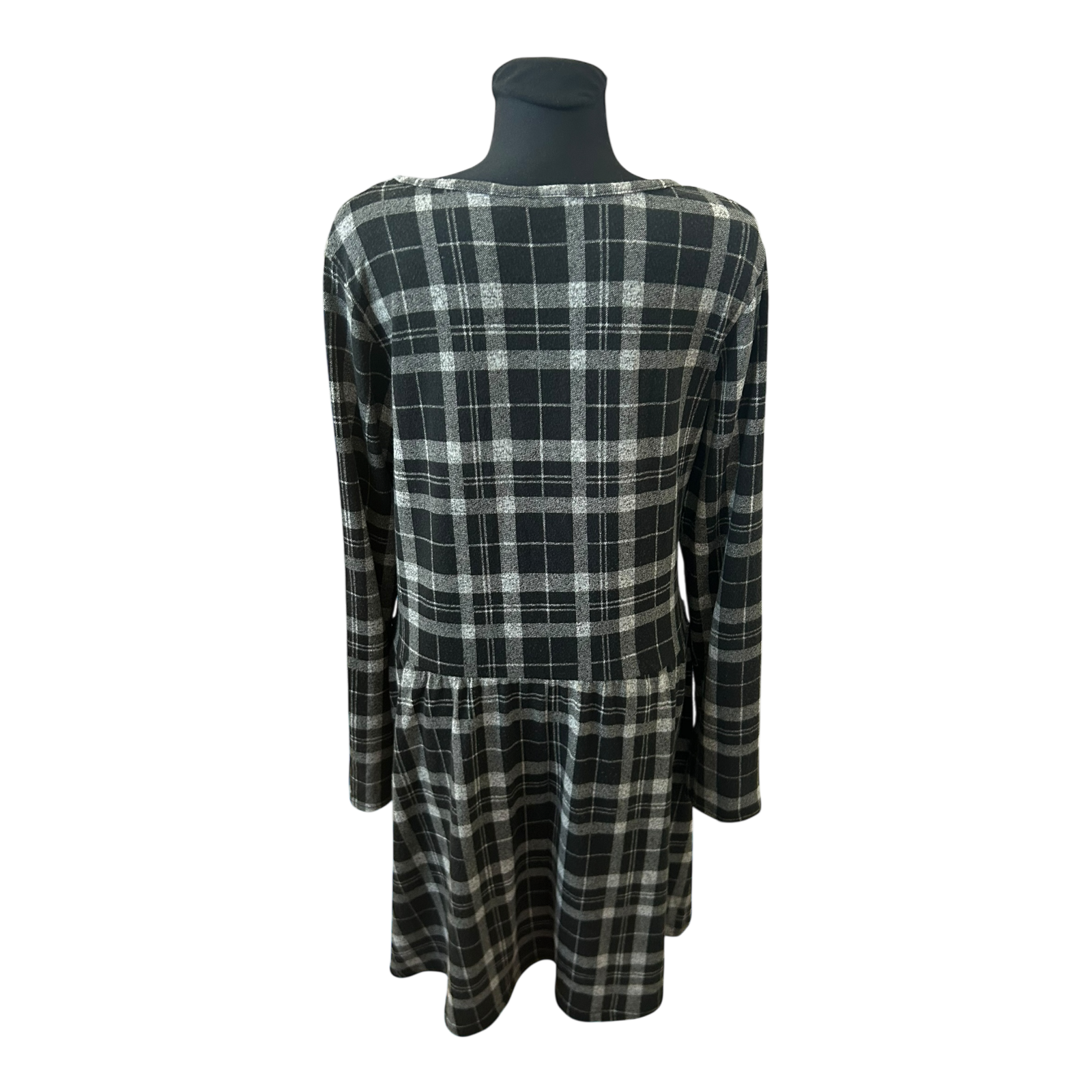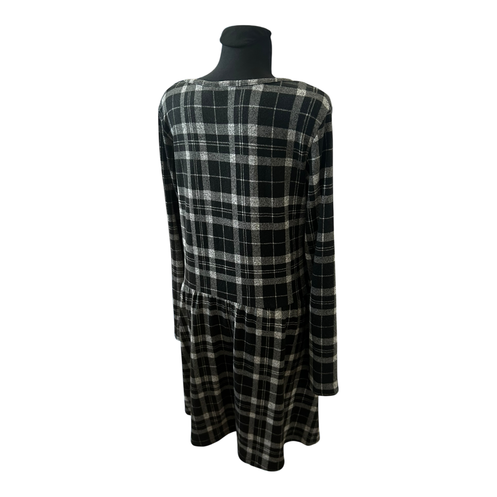 Gina Kleid Damen Gr 44 Schwarz Grau Karo Langarm Knielang Stretch