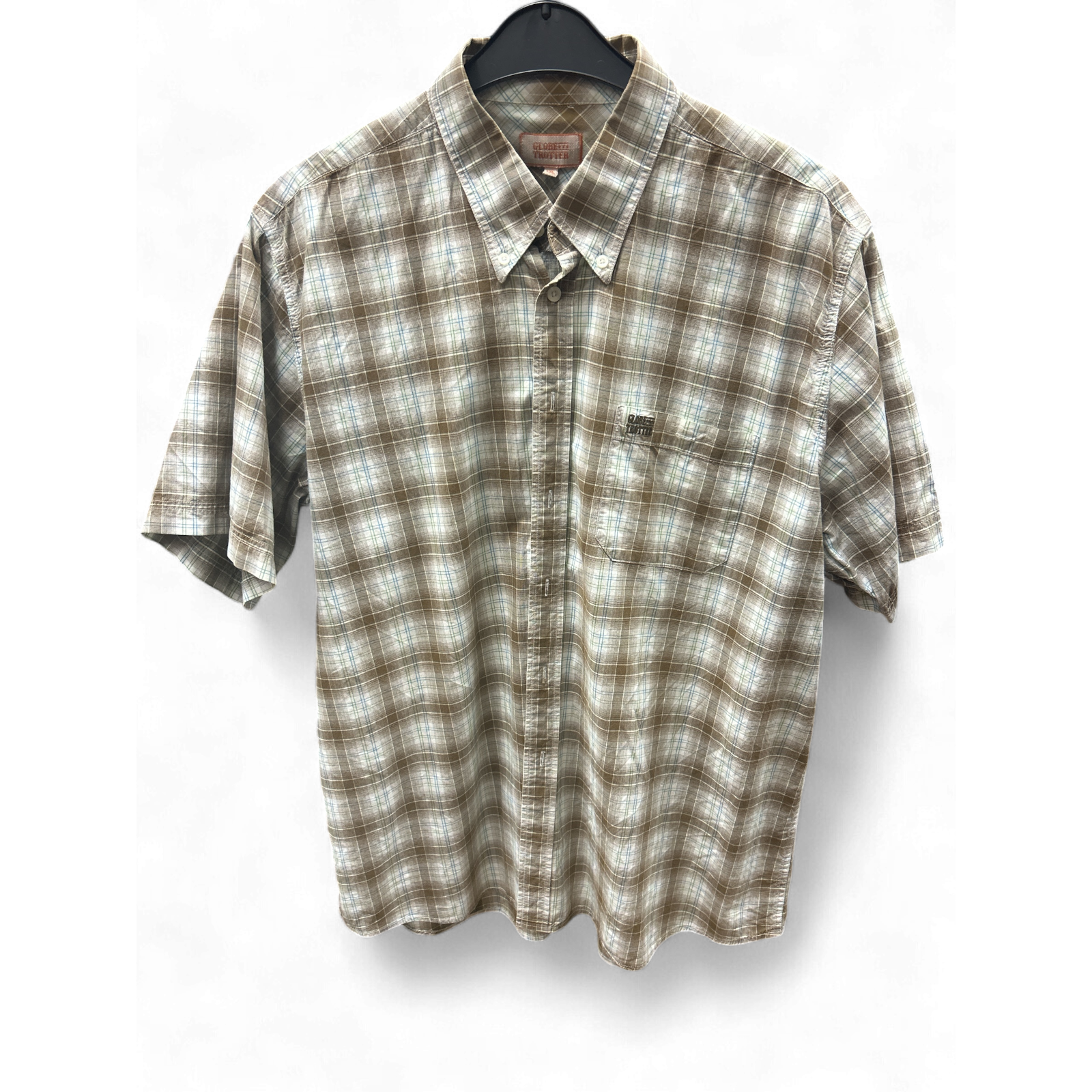 Robustes Kurzarmhemd von GLOBETROTTER in Größe XXL mit markantem, großem Karomuster in braun. Ideal für Outdoor-Aktivitäten und Freizeit, bietet es Komfort und Langlebigkeit im klassischen, zeitlosen Design.