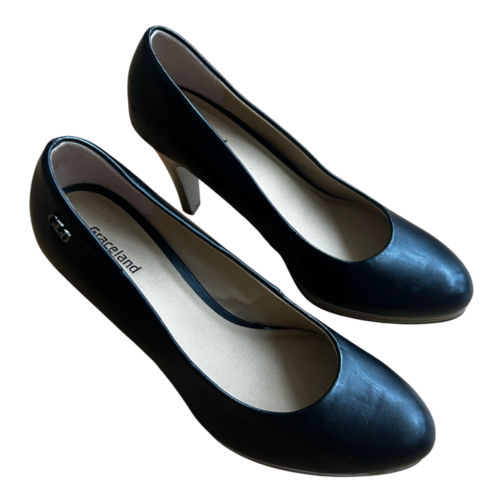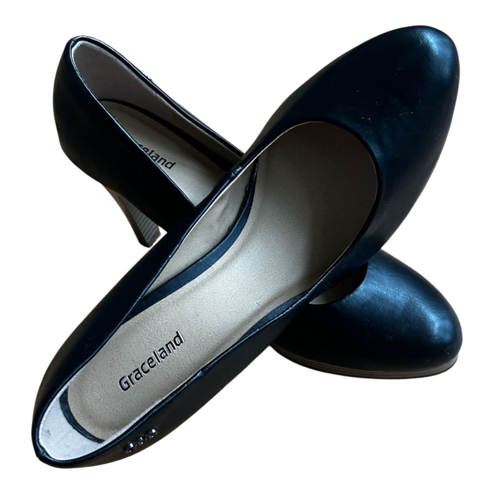 Diese eleganten Graceland Pumps in Größe 37 bestehen aus hochwertigem Veganleder und bieten eine klassische, feminine Silhouette. Der schmale Absatz sorgt für eine schöne Linienführung, während das zeitlose Schwarz vielseitig zu vielen Outfits passt. 👠 Die Schuhe befinden sich in sehr gutem Zustand, lediglich an der Innensohle zeigt sich ein kleiner Kratzer, der auf dem Foto sichtbar ist. ✨ Insgesamt ein stilvolles und bequemes Paar für Alltag, Büro oder besondere Anlässe.