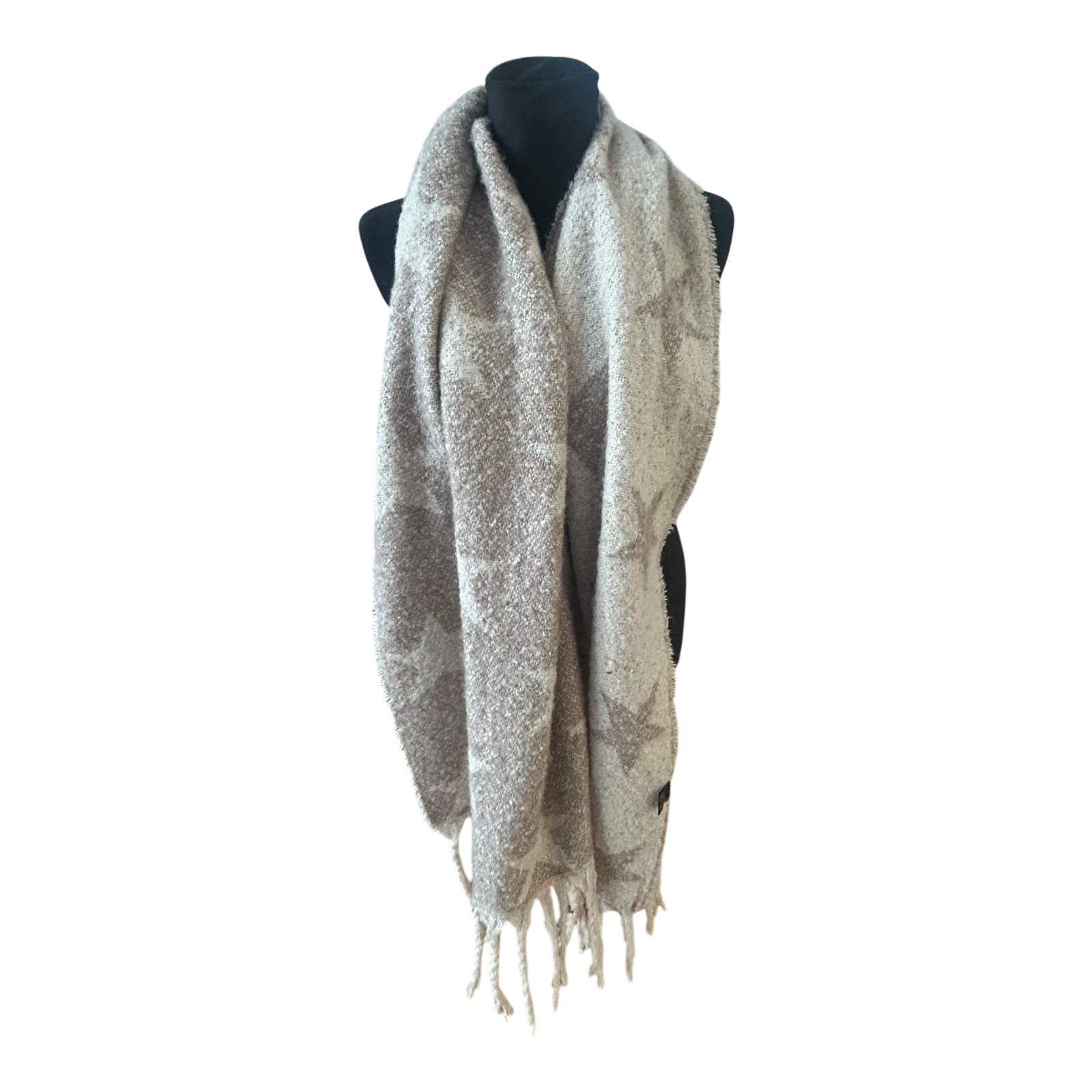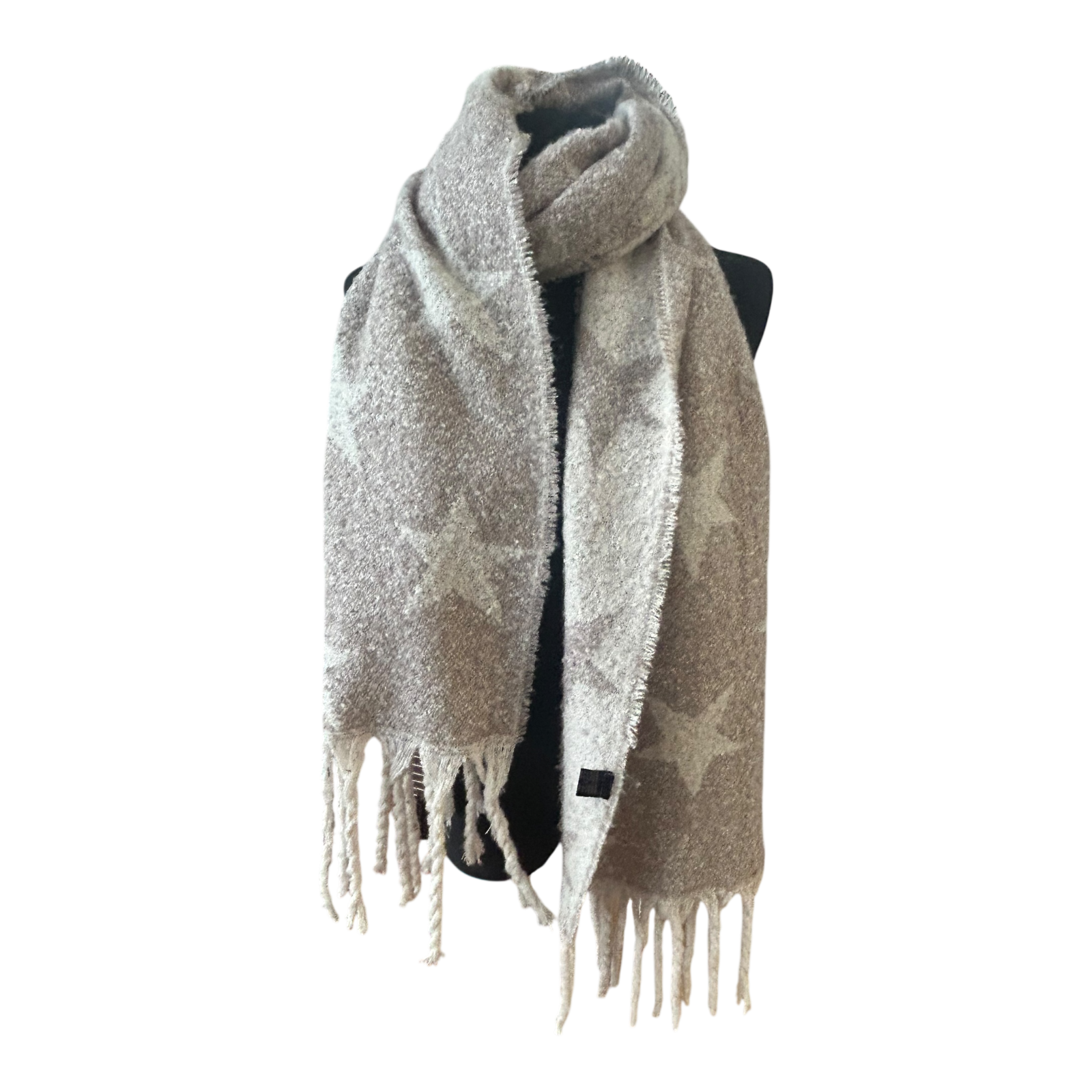 Großer Damen Schal weich flauschig mit Fransen Sternenmuster Herbst Winter