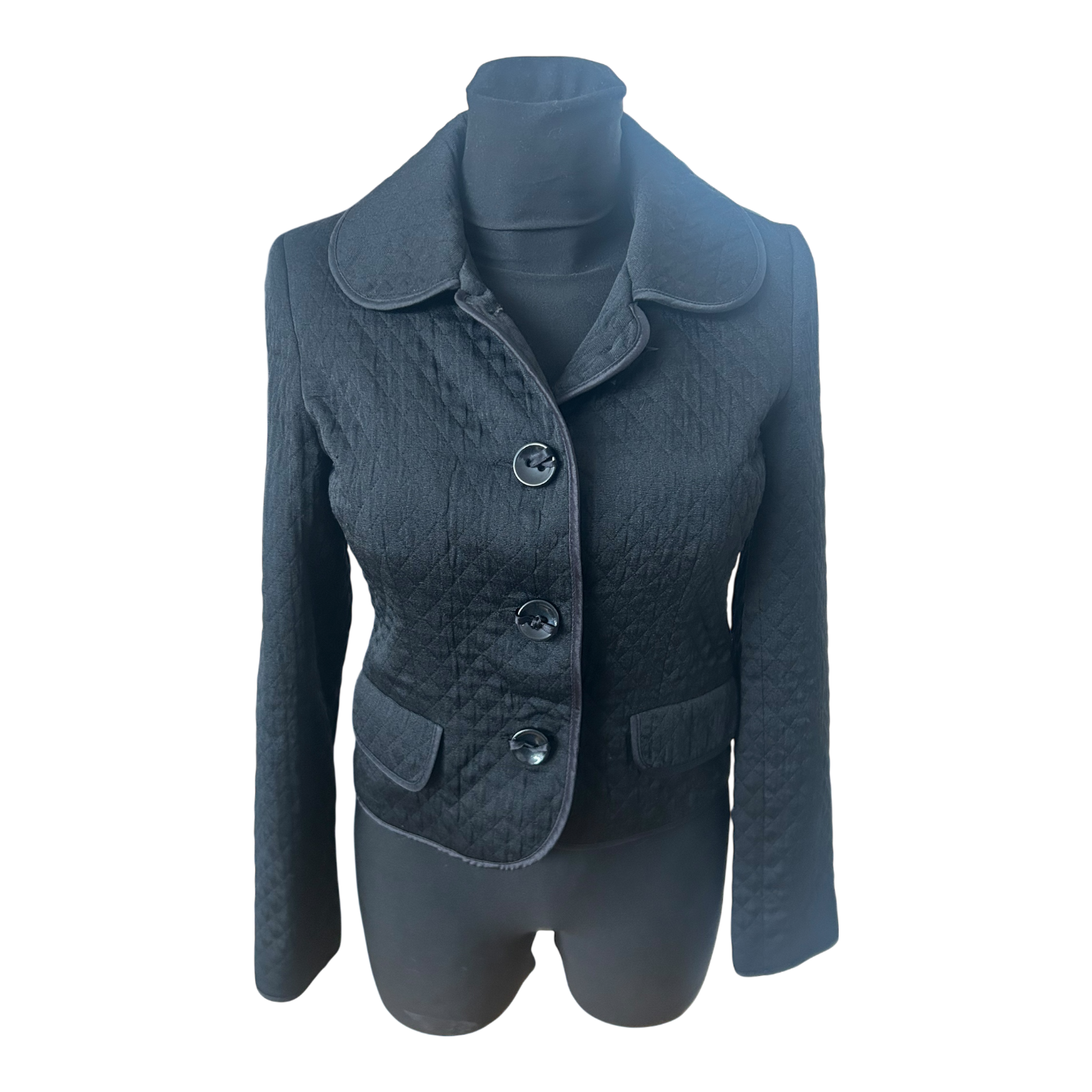 H&M Blazer Damen Gr 34 Schwarz Steppoptik Kurzblazer Übergang Elegant