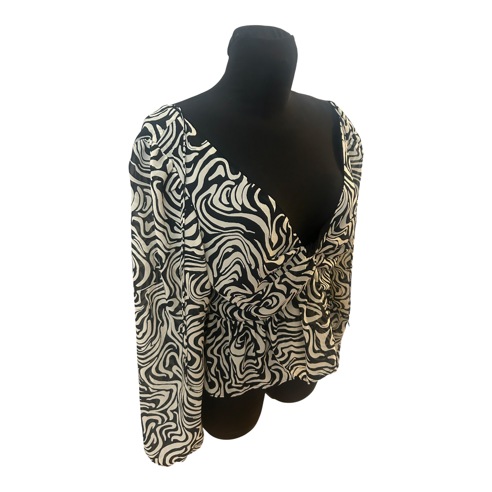 Wunderschöne Bluse von H&M in Größe M mit modernem beige-schwarzem Muster und besonders femininem Schnitt ✨ Die Bluse besteht aus 100% Polyester und fällt weich sowie angenehm leicht.