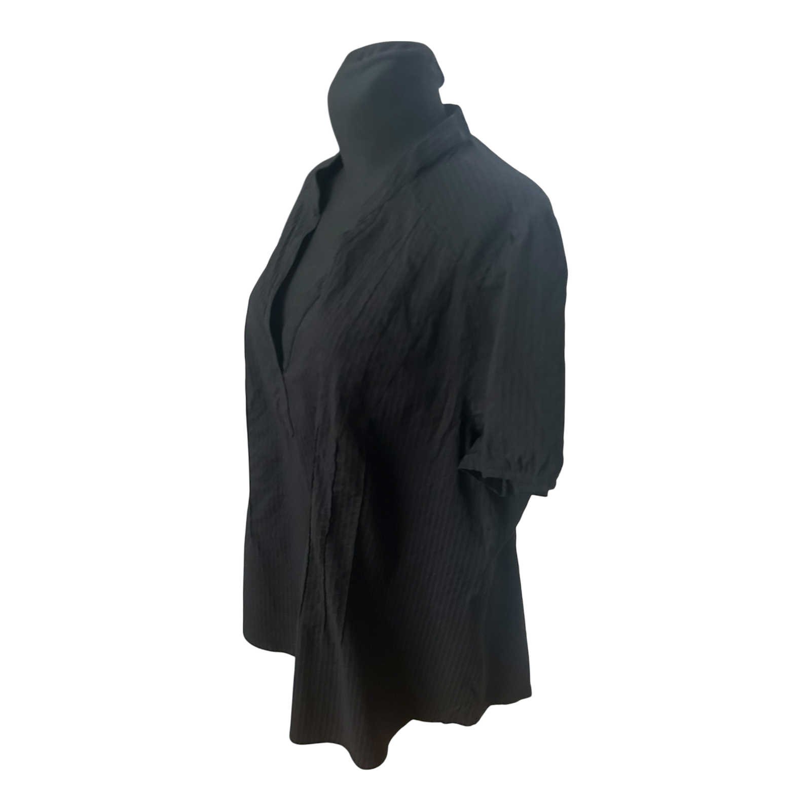 H&M Damen Bluse Gr 54 Schwarz Casual 3/4 Arm Strukturstoff Viskose Baumwolle Mix