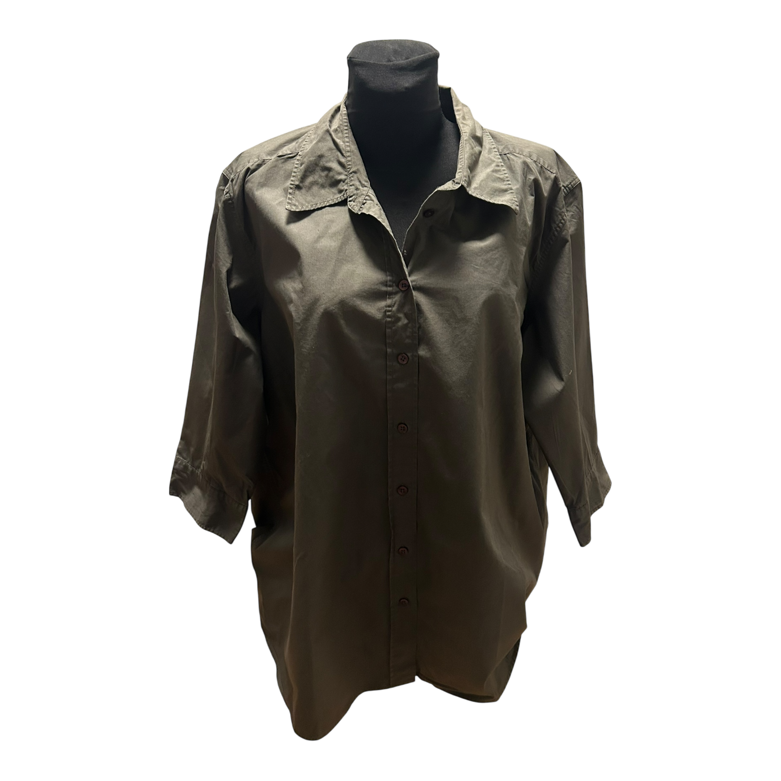 H&M Damen Bluse Khaki Gr 2XL Baumwolle 3/4 Arm Hemdbluse Casual Gross