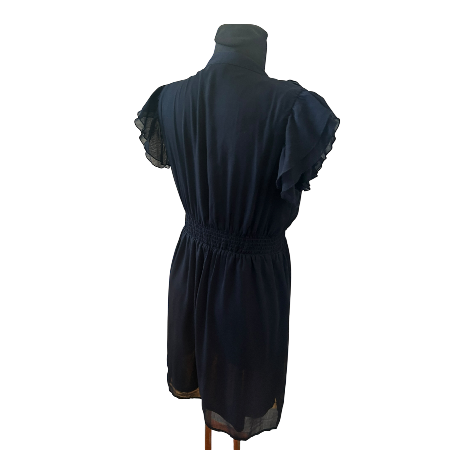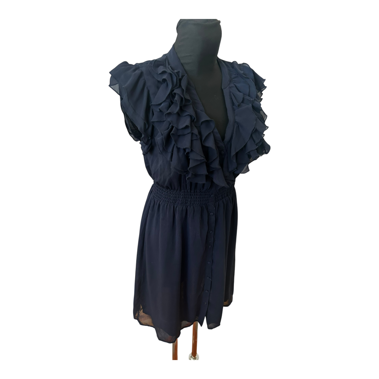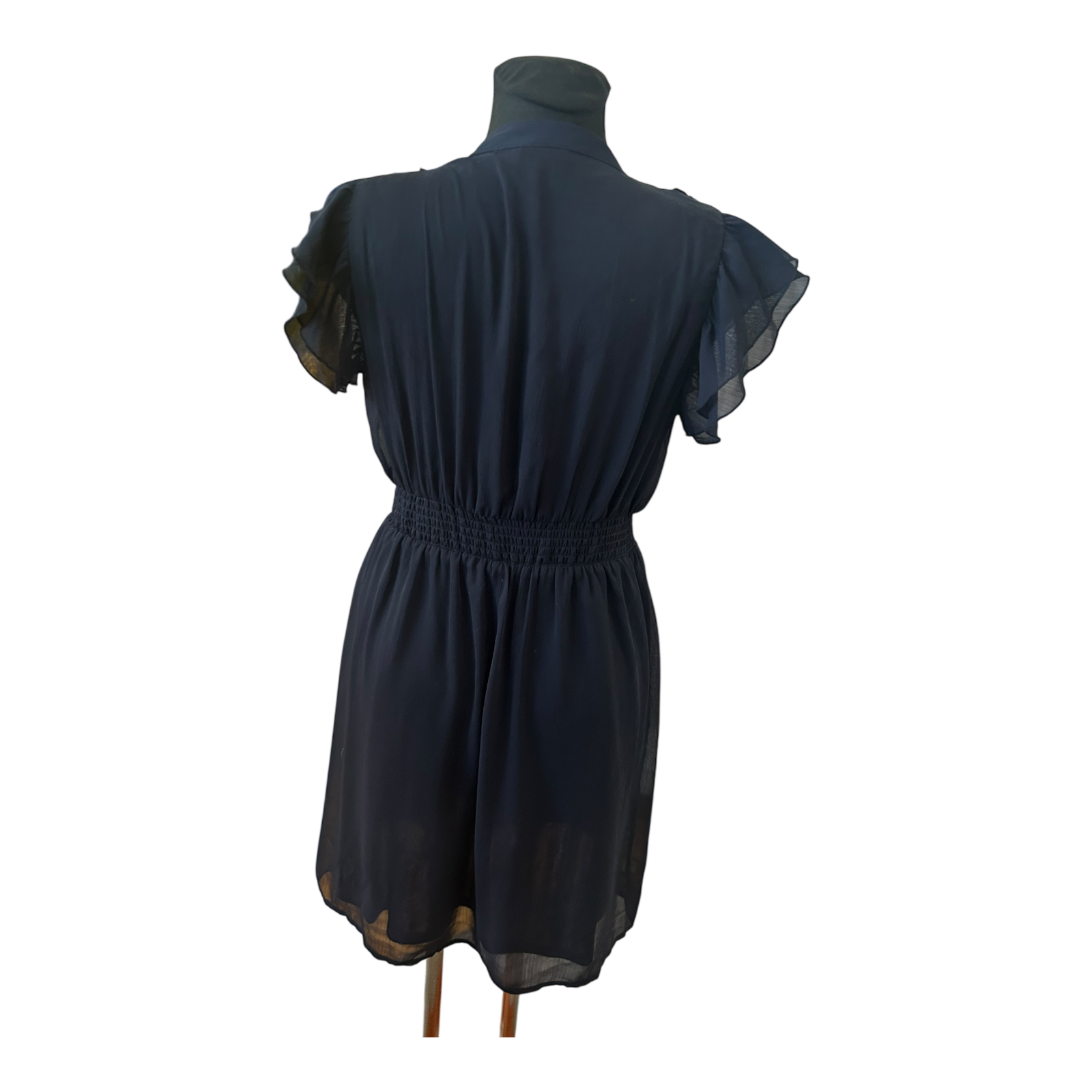 H&M Damen Kleid Sommer Volants Chiffon Dunkelblau Elegant Gr 40