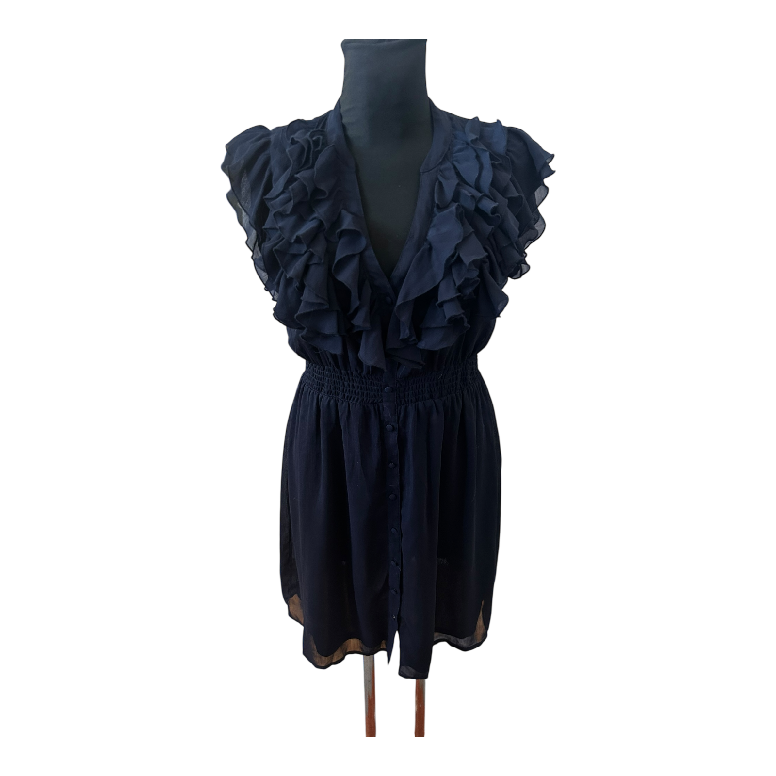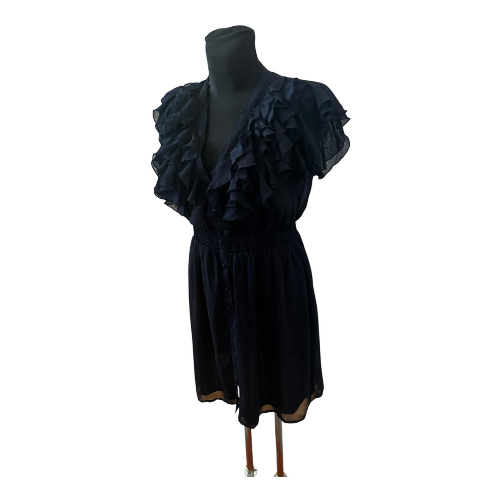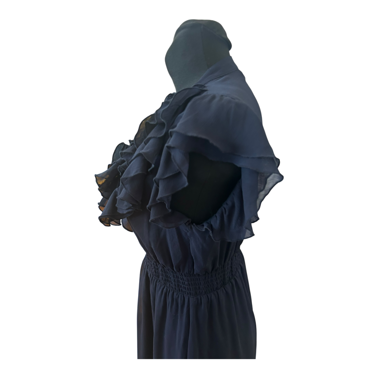H&M Damen Kleid Sommer Volants Chiffon Dunkelblau Elegant Gr 40