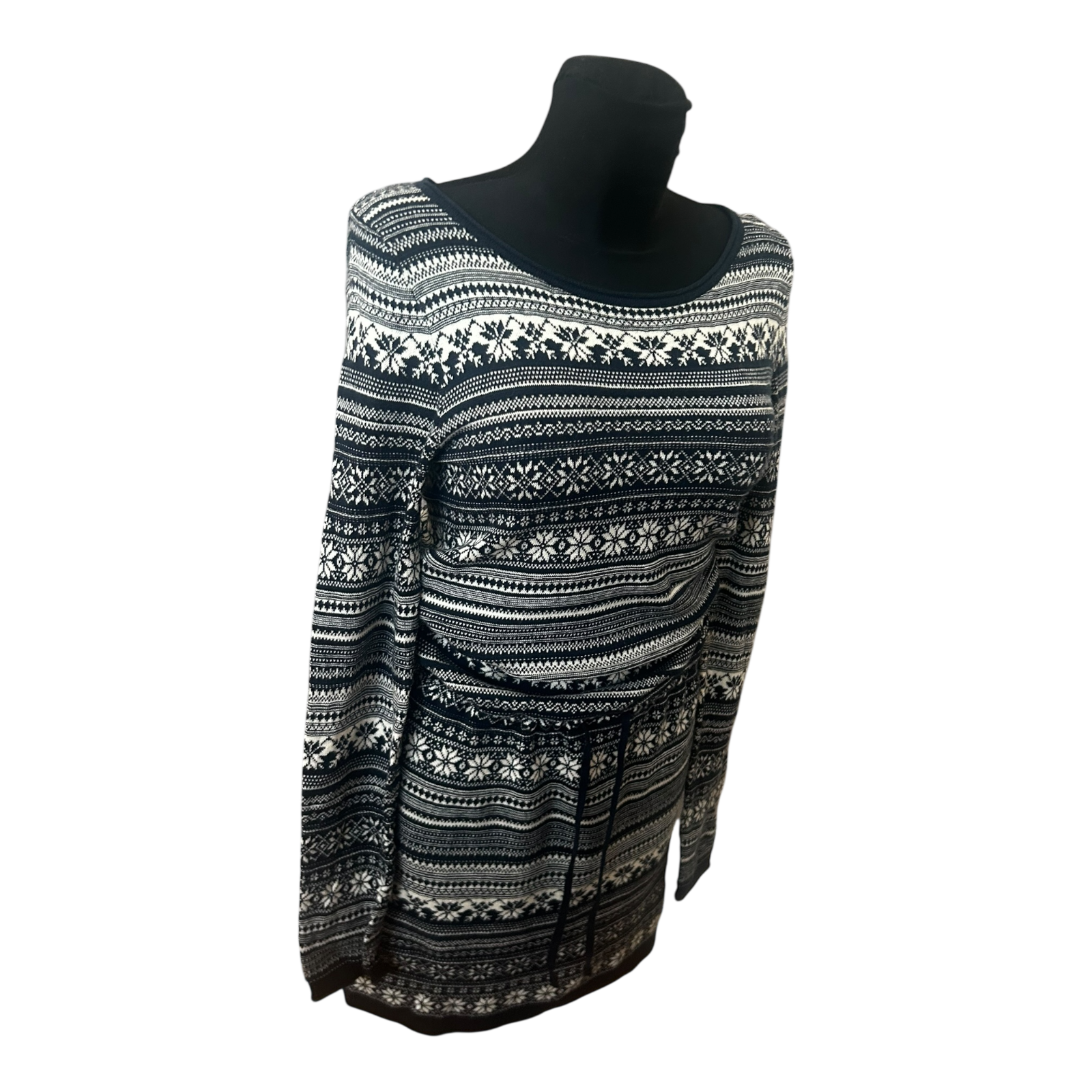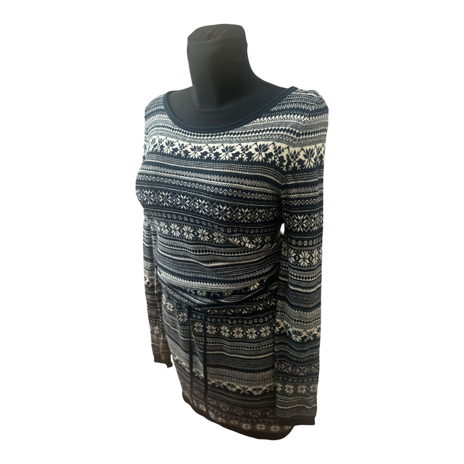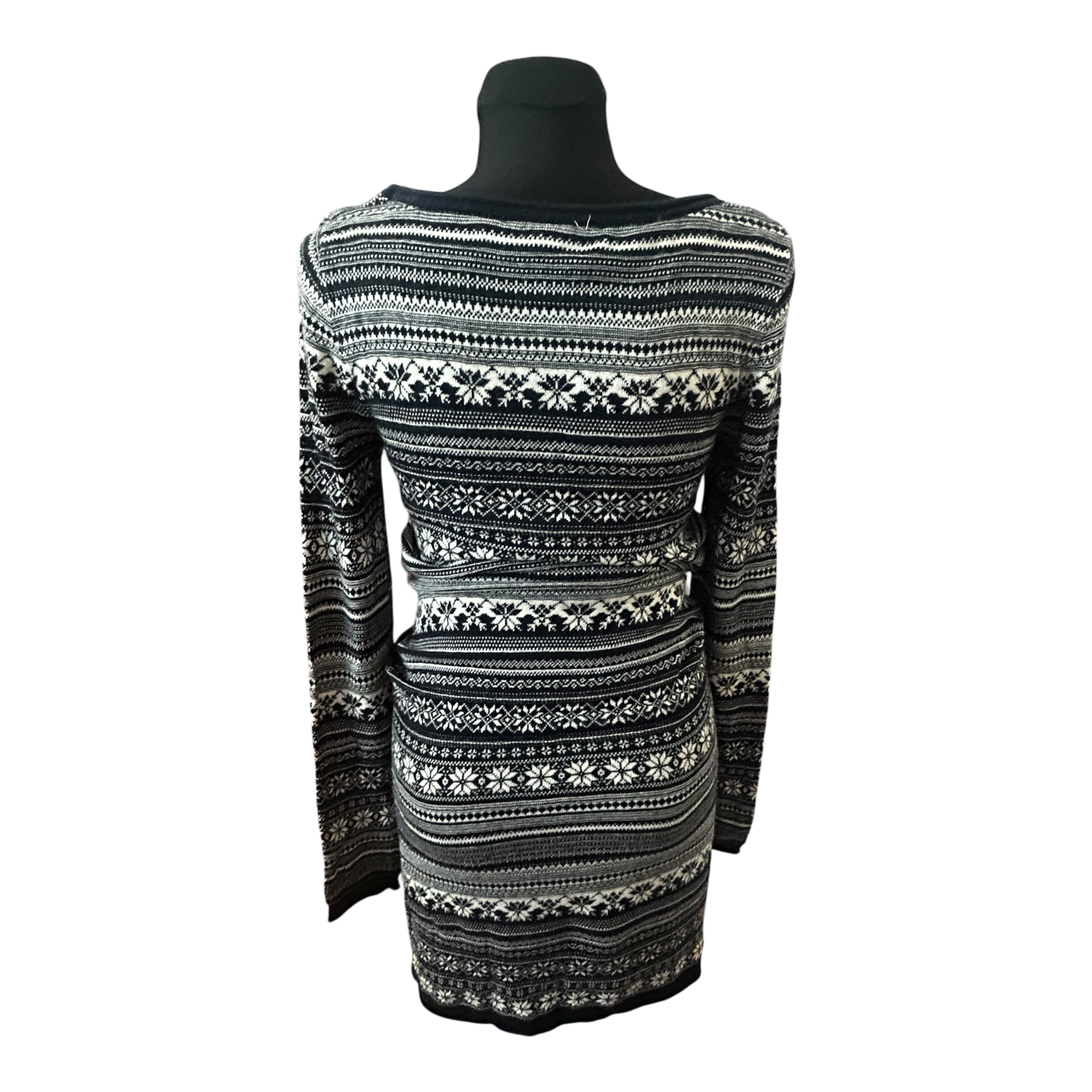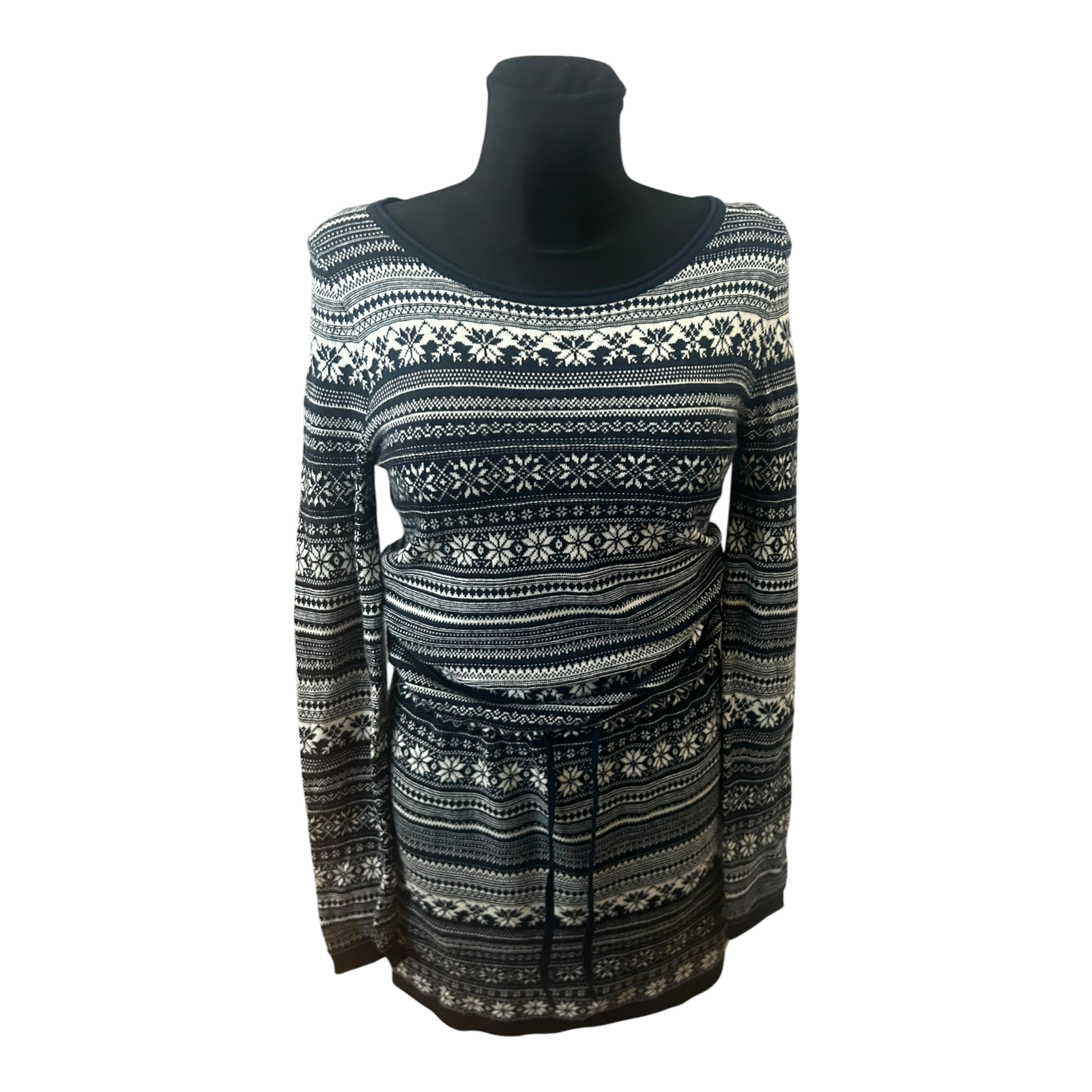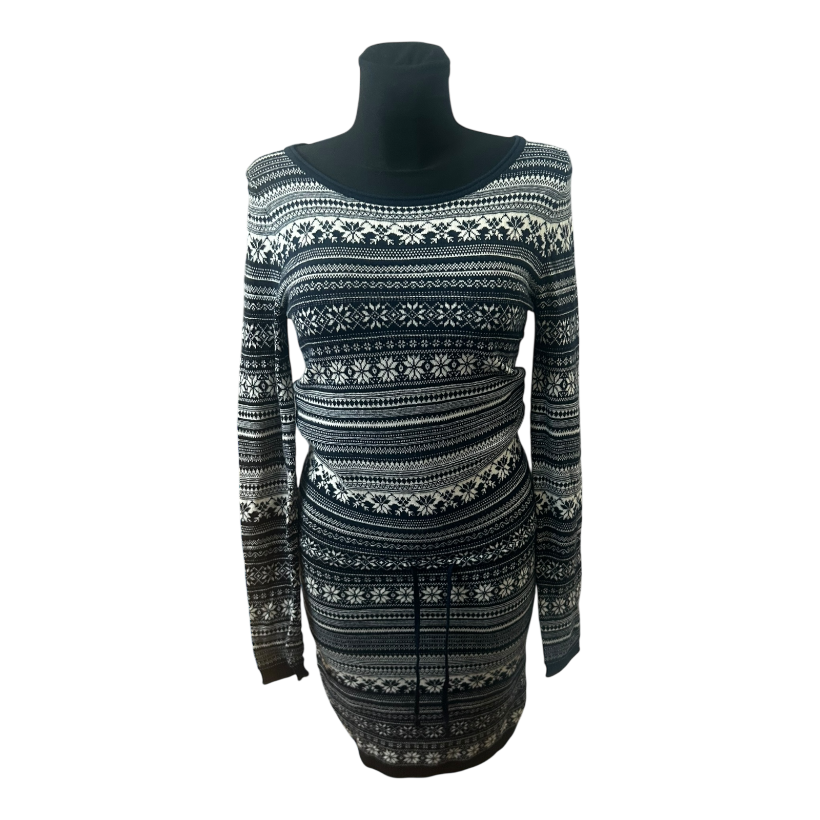 H&M Damen Kleid Norwegermuster Strickkleid Winter Midikleid Gr S Blau