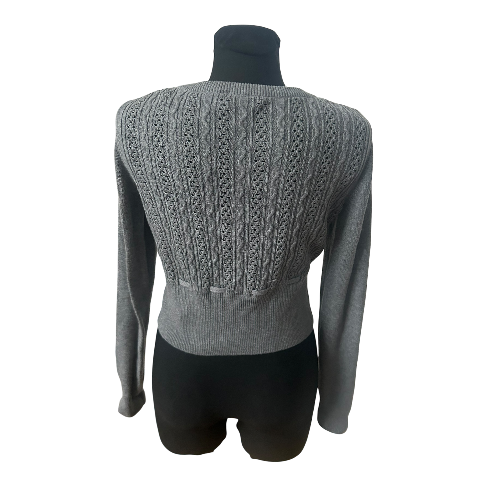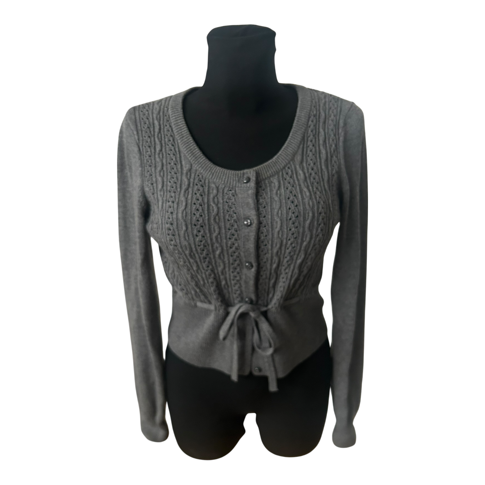 H&M Damen Strickjacke Gr M Grau Zopfmuster Tailliert Baumwollmix