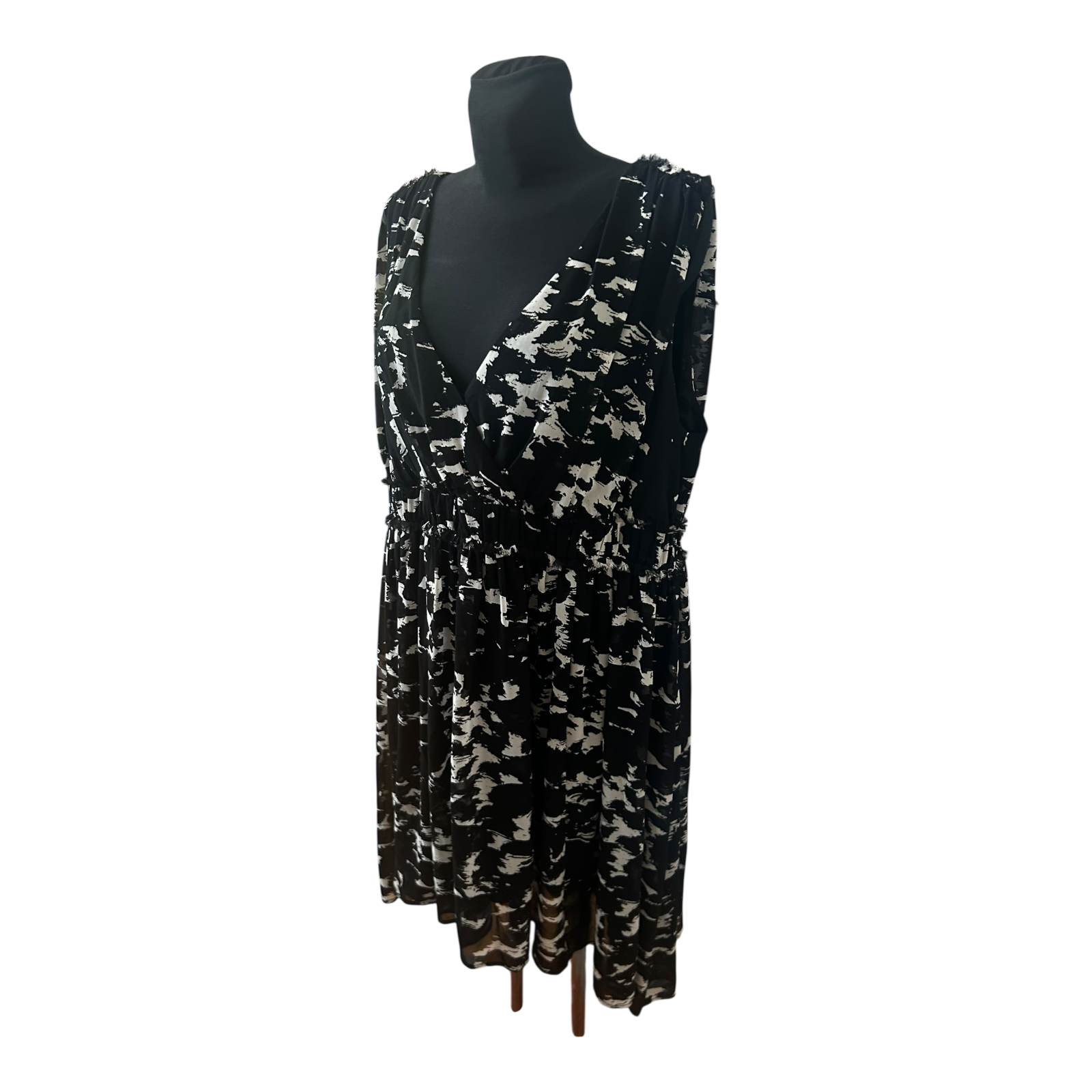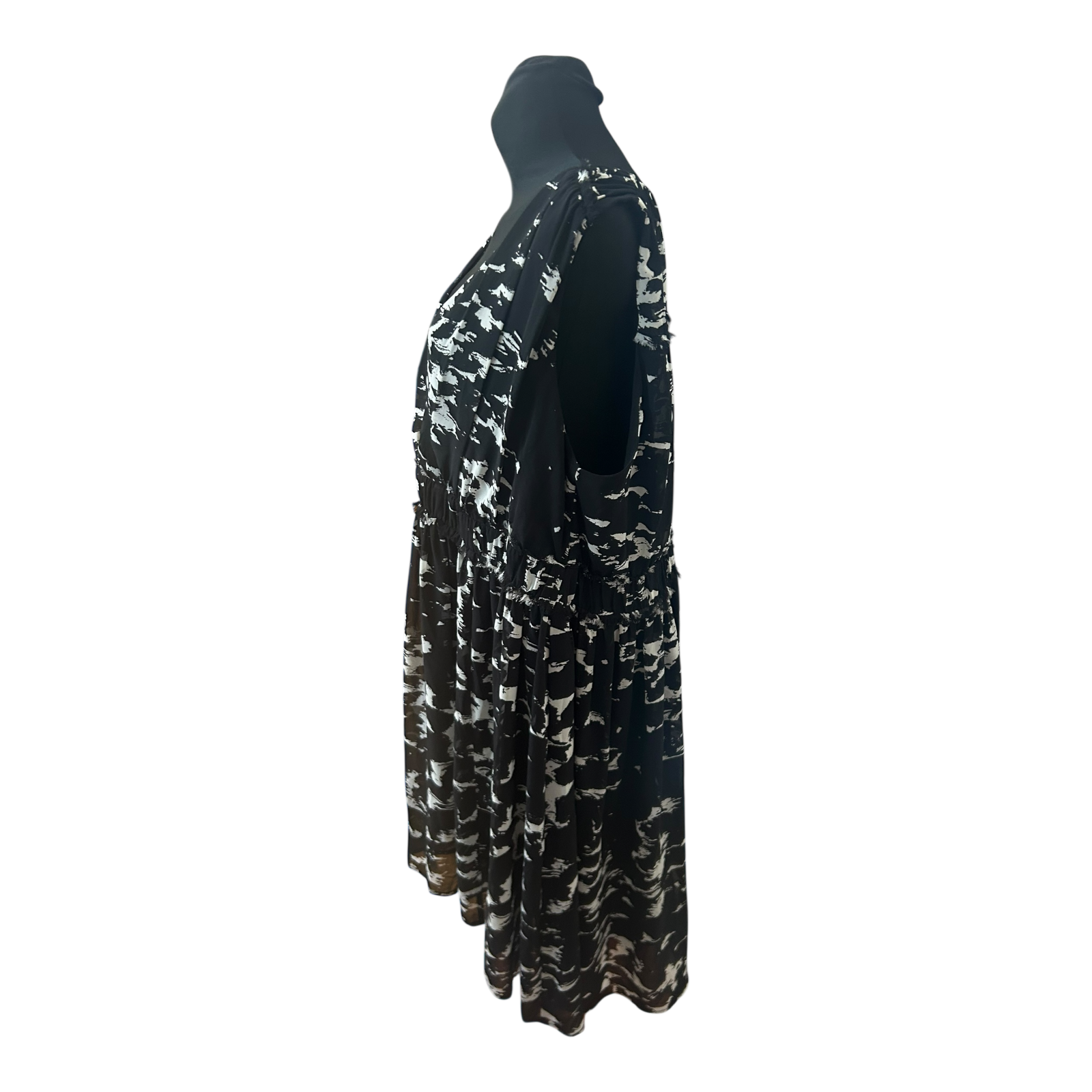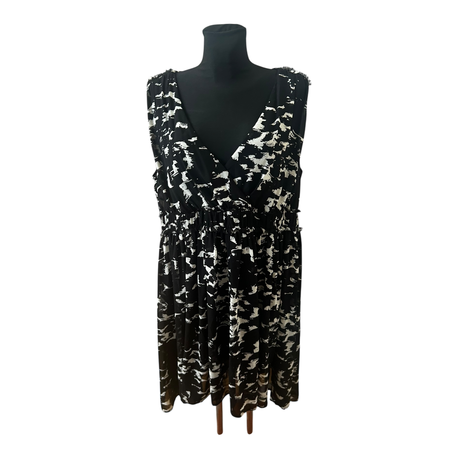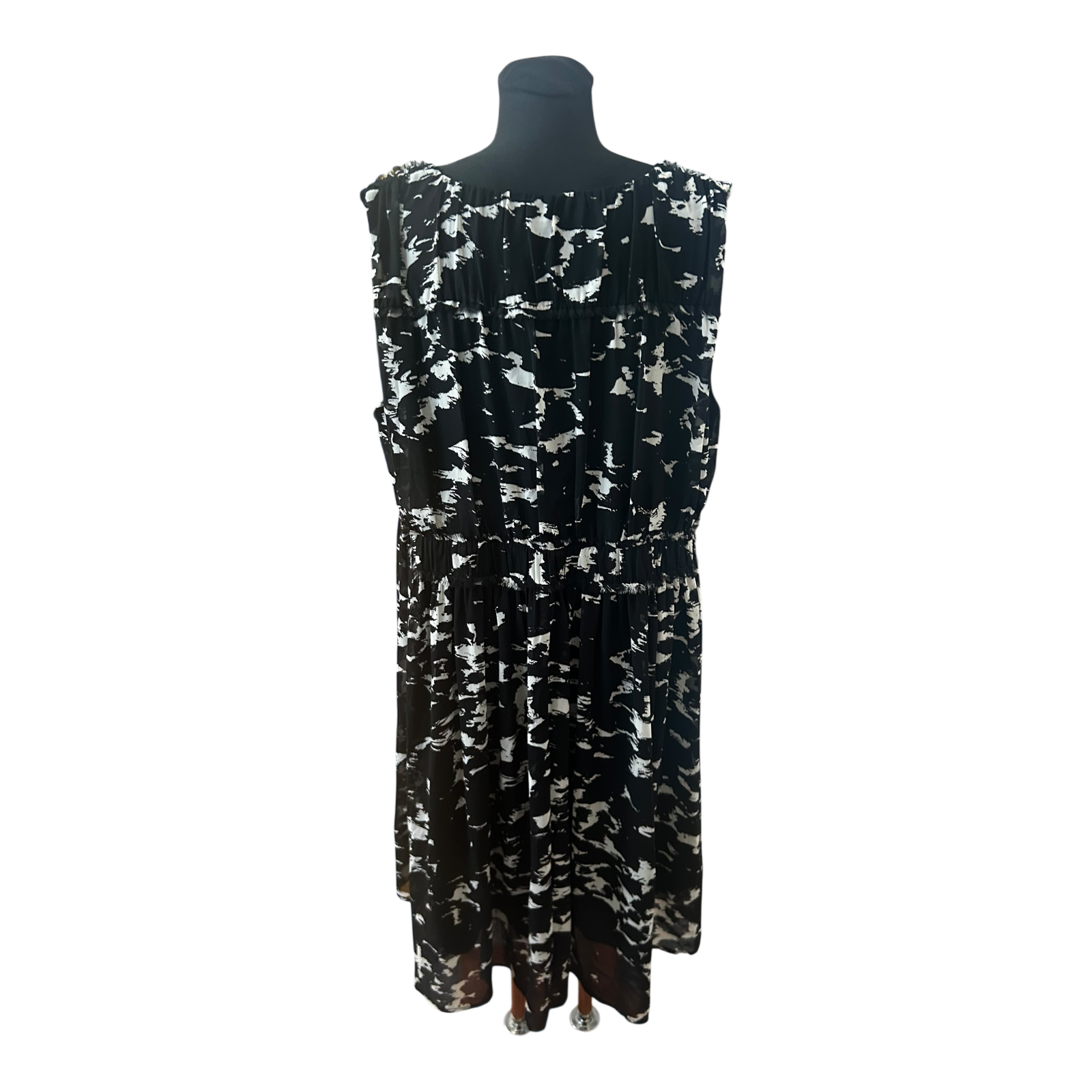 H&M Kleid Damen Gr 50 Schwarz Weiß Muster Ärmellos Elegant