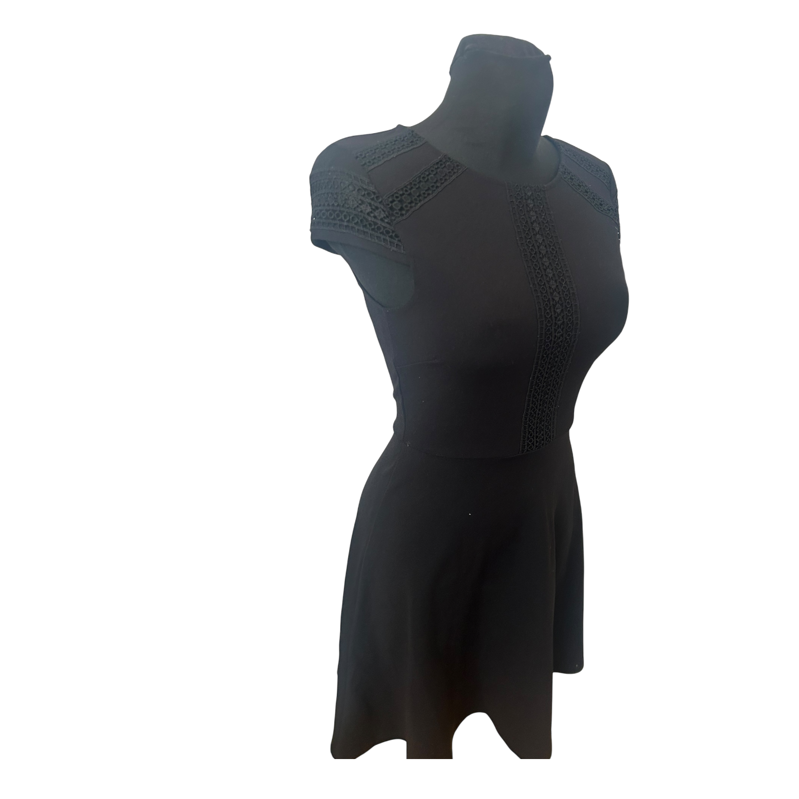 H&M Kleid Damen XS Schwarz Kurzarm A Linie Stretch Elegant Reissverschluss