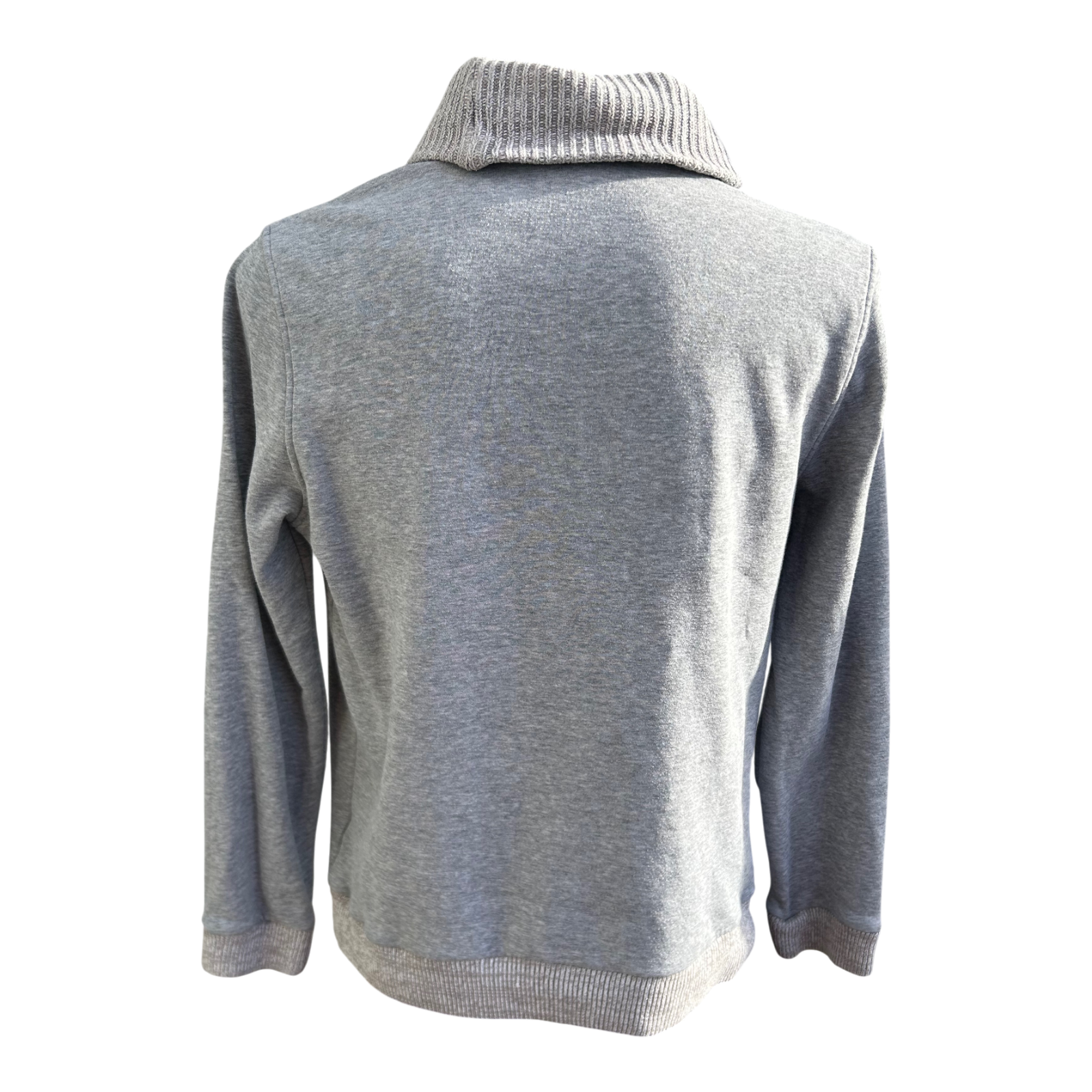 H&M Pullover Herren Gr M Grau Schalkragen Baumwolle Casual Modern Freizeit