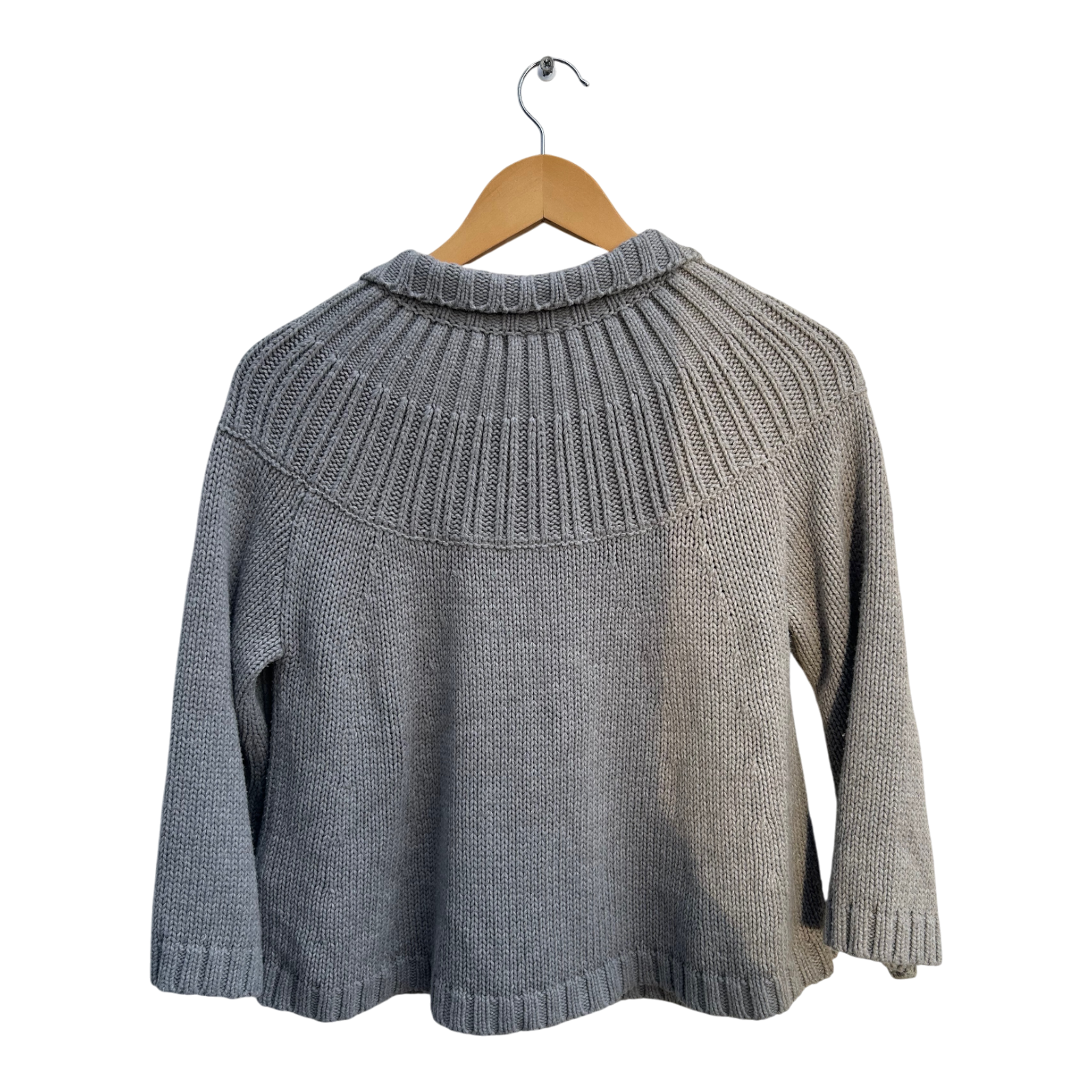 H&M Strickjacke Damen Gr S Grau 3/4 Ärmel Ausgestellt Grobstrick Elegant