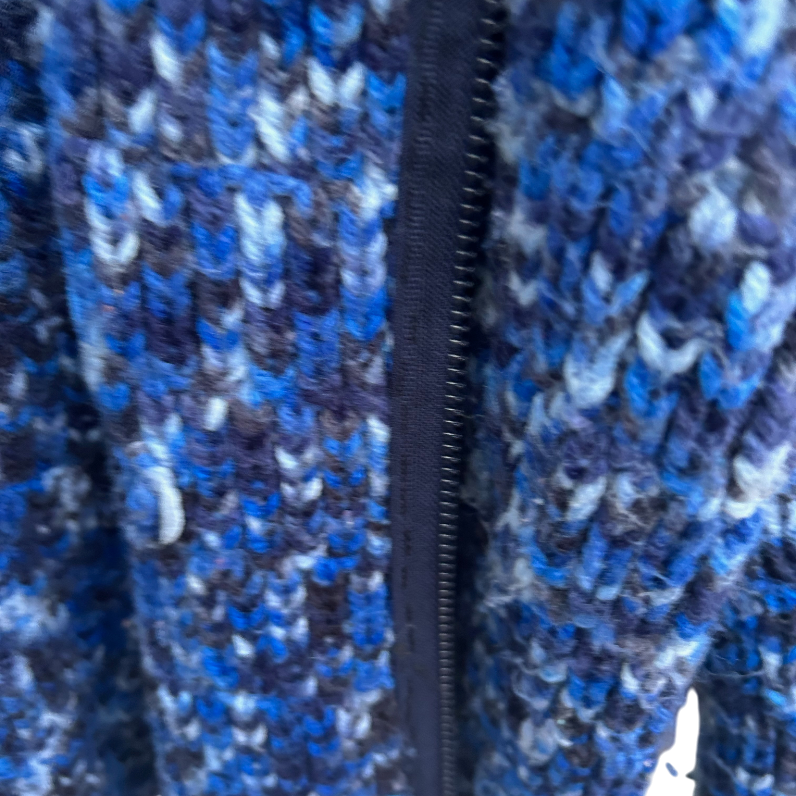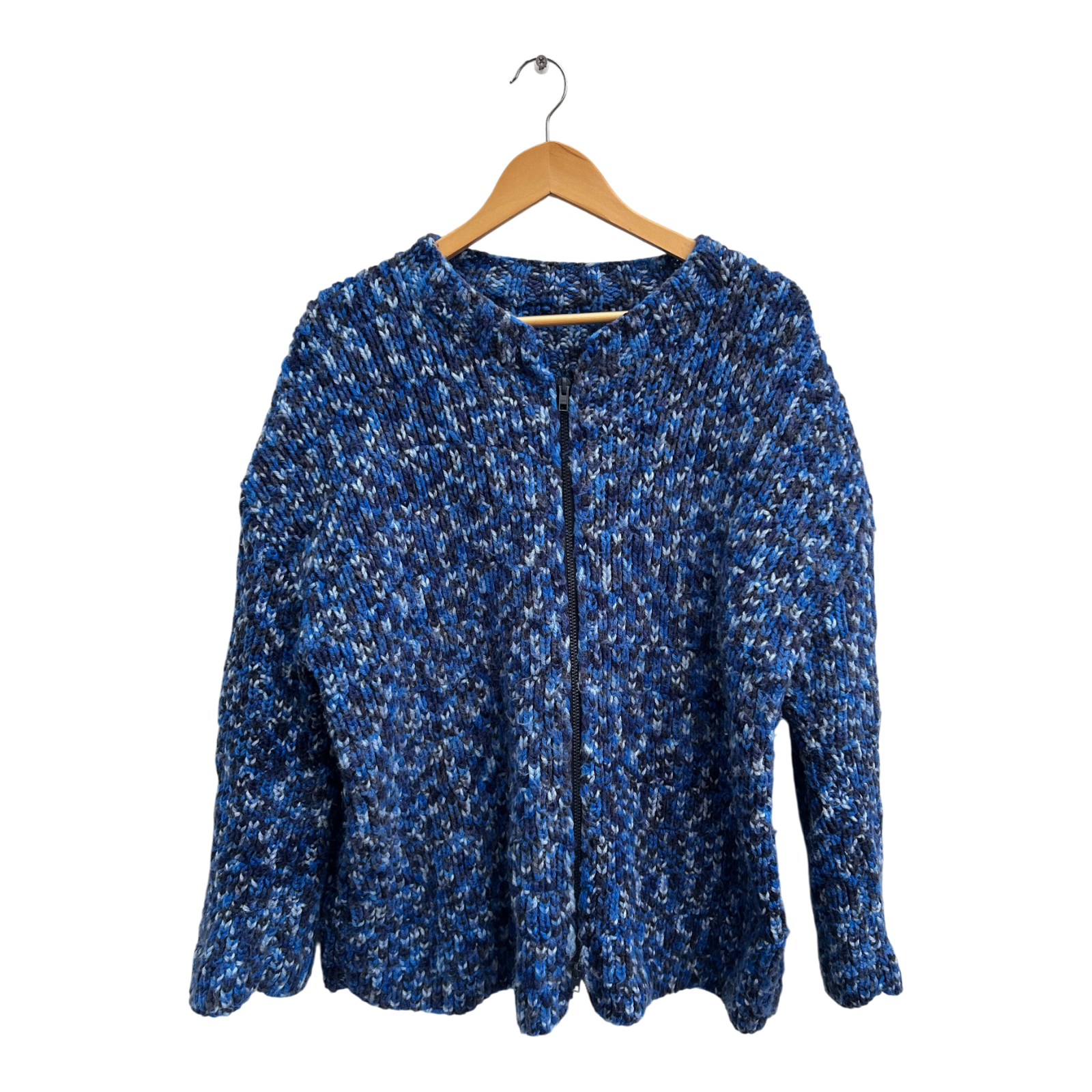 Handgestrickte Strickjacke Damen Blau Meliert Reißverschluss Wollmix Warm Gr 42 44