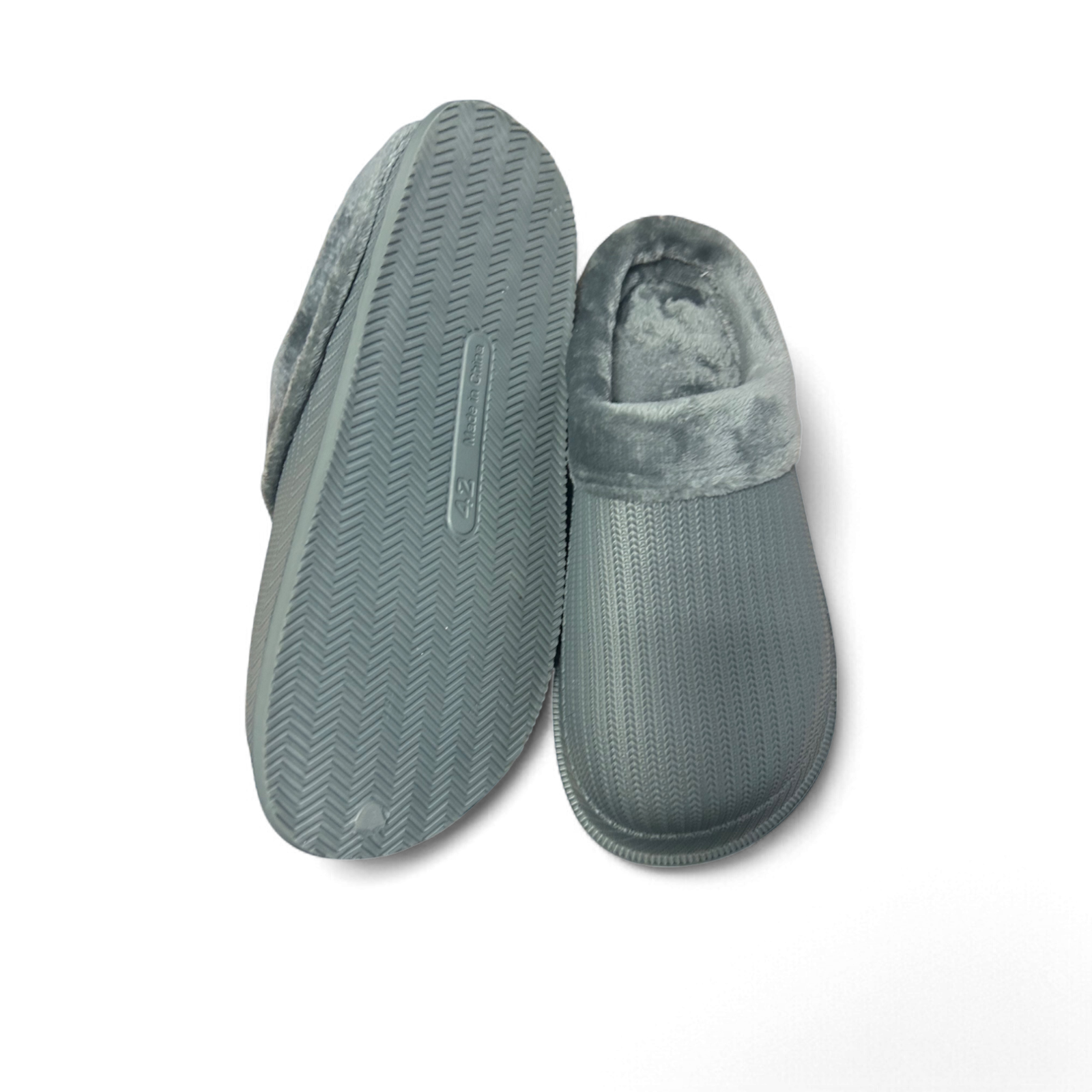 Hausschuhe Herren Gr 42 Grau Warm Gefüttert Rutschfest Winter Pantoffeln Neu