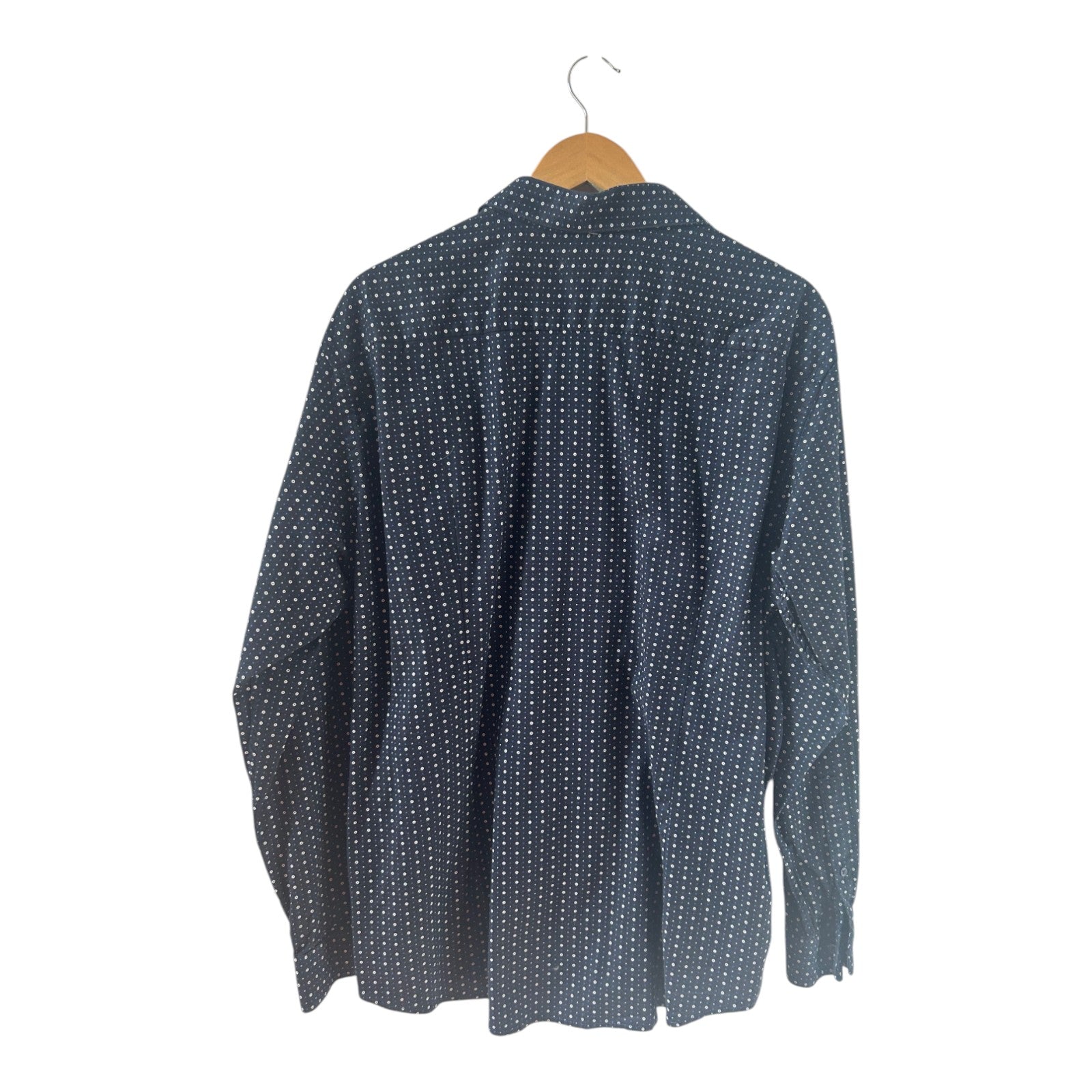 Hemd Herren XL Dunkelblau Punkte Muster Baumwolle Stretch Langarm Modern Top