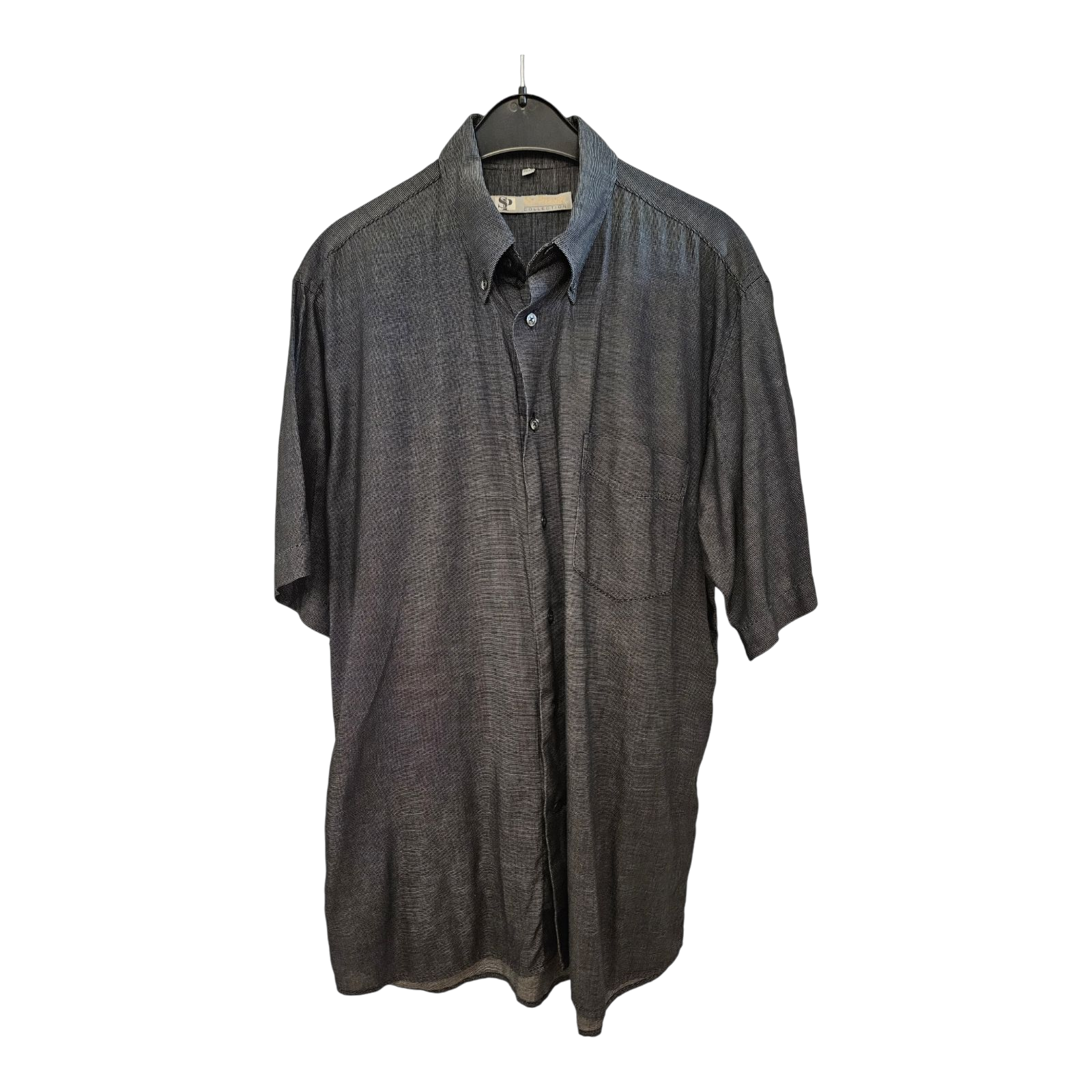 Das St. Pierre Collection Kurzarmhemd in Regular Fit, Größe 39/40 (M), ist schwarz mit kleinen weißen Punkten. Der klassische Schnitt sorgt für eine bequeme Passform, während das dezente Punktemuster dem Hemd eine elegante und moderne Note verleiht. Ideal für stilvolle Casual- oder Business-Outfits.