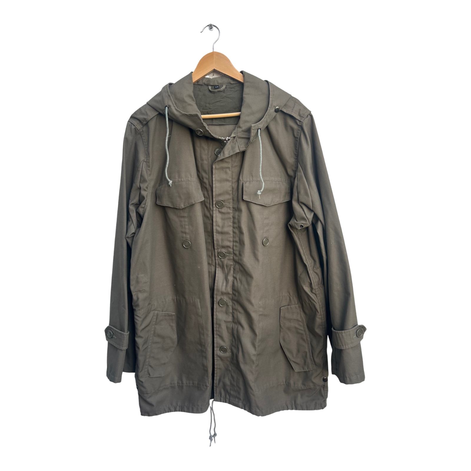 Herren Parka Gr 54 Khaki ungefüttert Baumwolle Freizeit Jacke Kapuze Tunnelzug