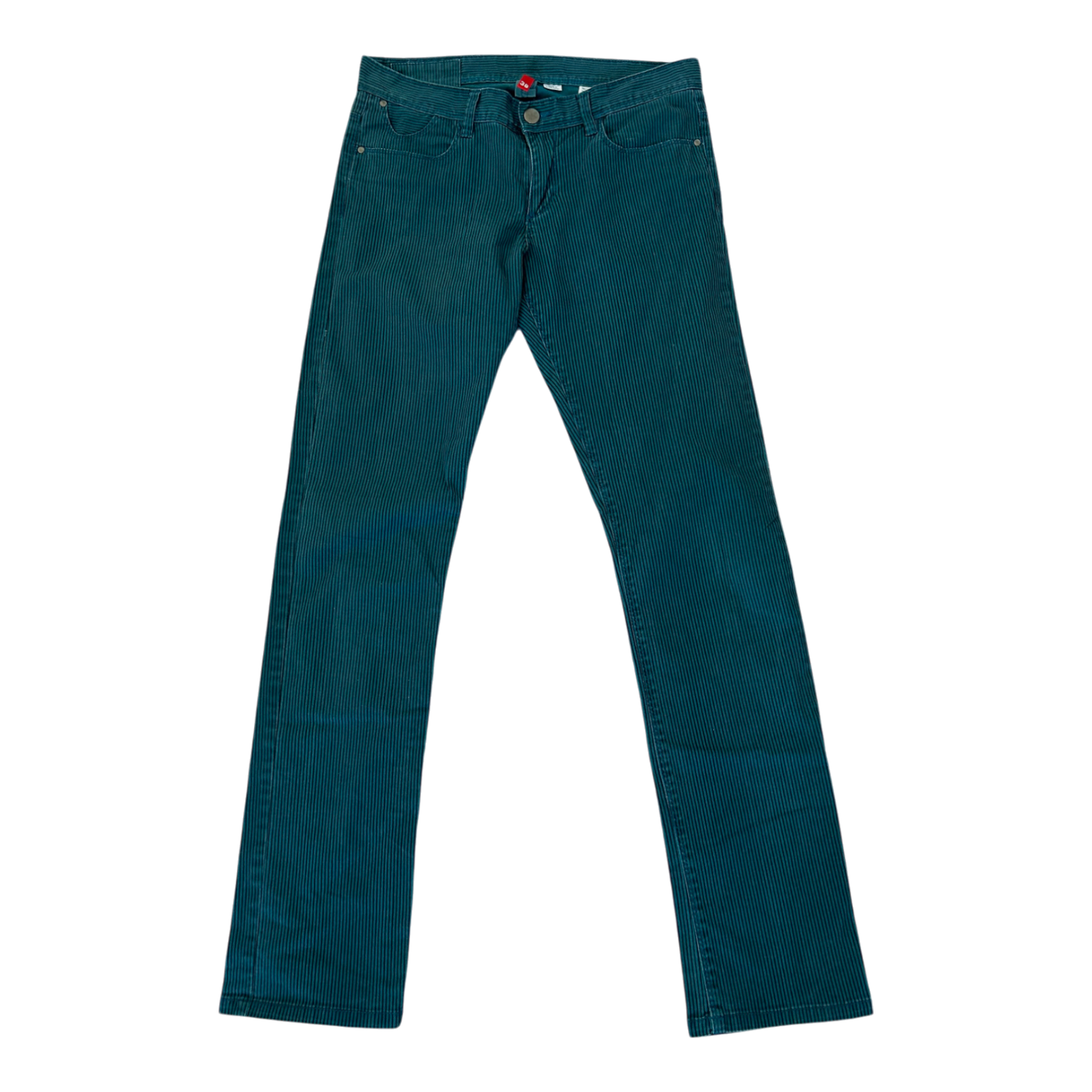 Diese stylische H&M Damen Jeans in Größe 38 besticht durch schmale grün-schwarze Streifen und einen komfortablen Stretchanteil. Die schmale Passform sorgt für eine moderne Silhouette und macht diese Jeans perfekt für lässig-coole Outfits. Ein vielseitiges und auffälliges Teil, das sich ideal für einen trendigen Look kombinieren lässt.