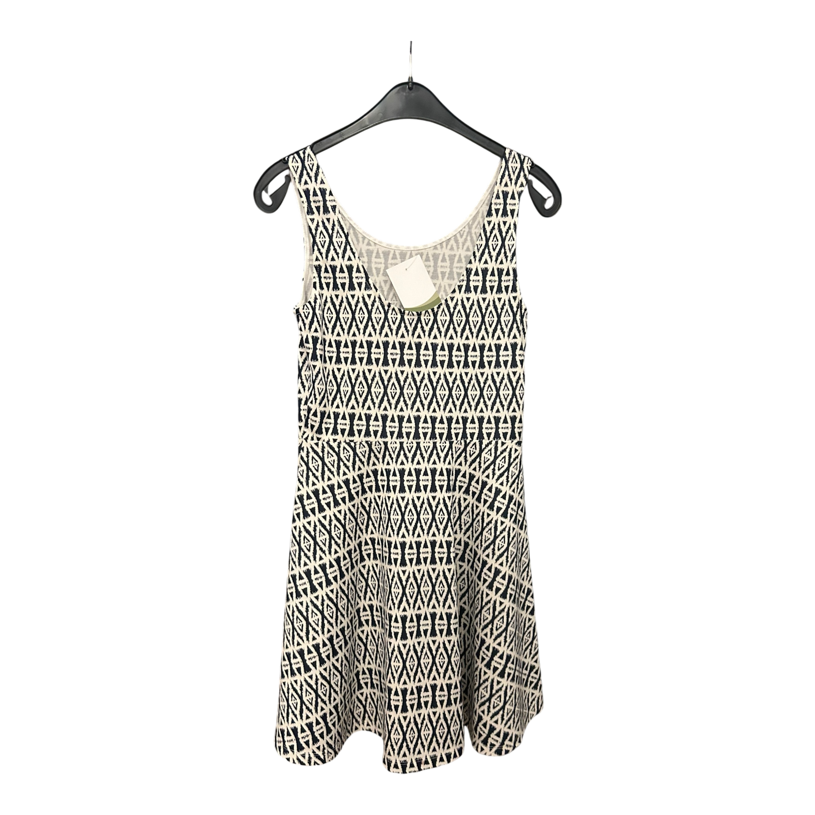 H&M Kleid Damen Dress Damenkleid Gr. 38 Beige Schwarz Muster Sommer Look Elegant