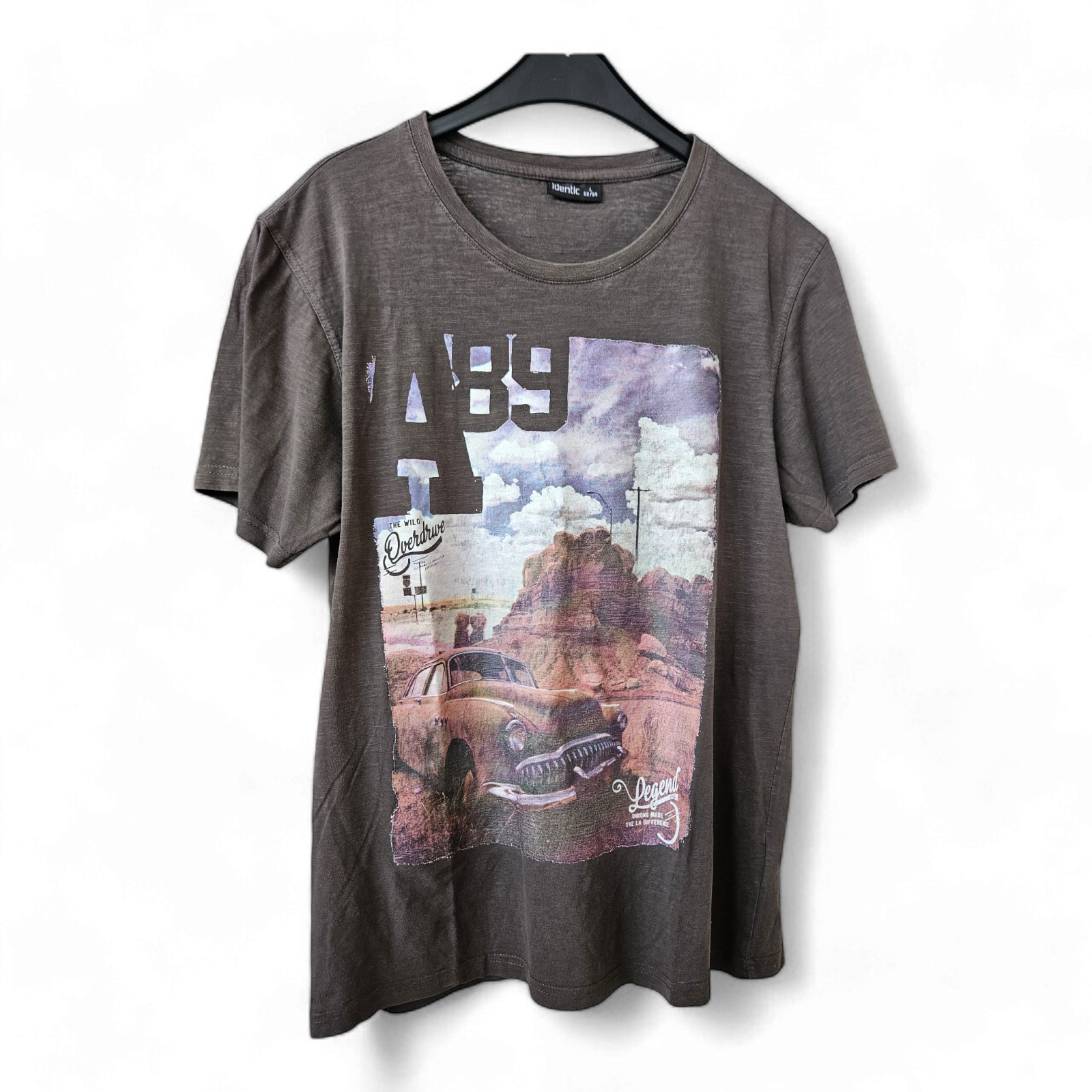 Ein stylisches Kurzarm-T-Shirt von Identic in Größe L, gefertigt aus weichem Material in Grau, das mit einem auffälligen farbigen Print verziert ist. Dieses T-Shirt kombiniert Komfort mit einem modernen Design und eignet sich hervorragend für lässige Freizeitoutfits. Ideal, um jedem Look einen Hauch von Farbe zu verleihen.