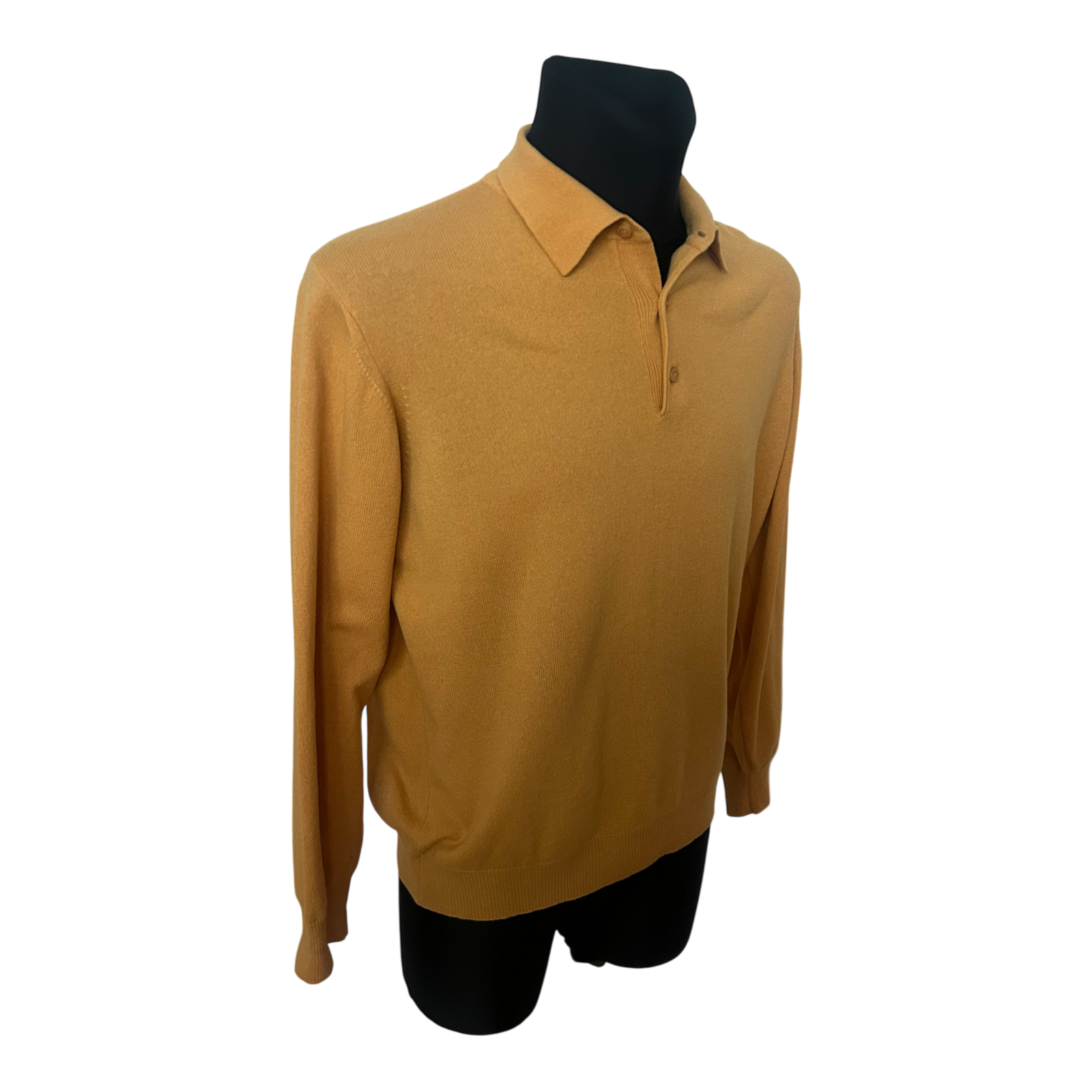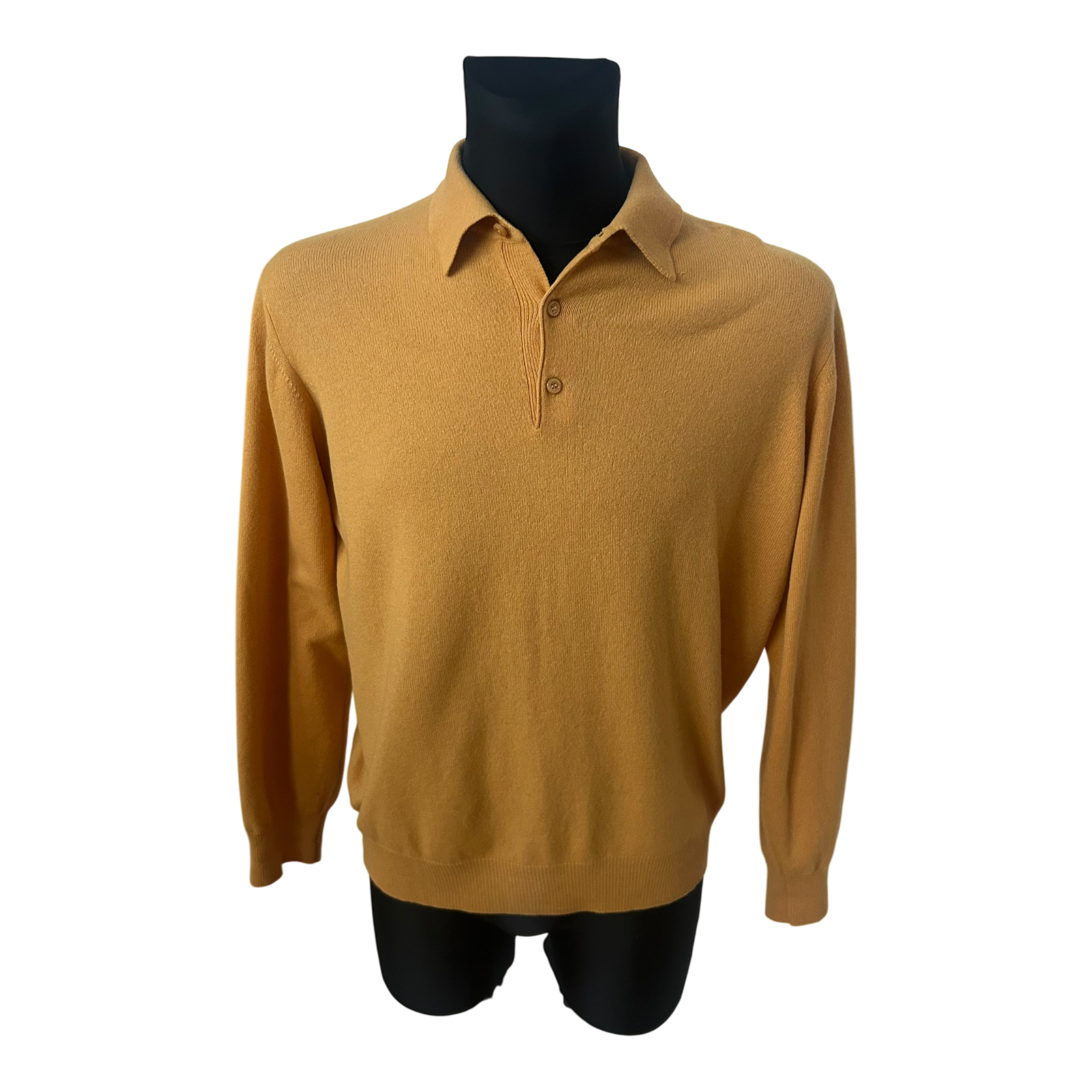 Herren Pullover Gelb Strick Gr 52 Wolle Seide Kaschmir Made in Italy