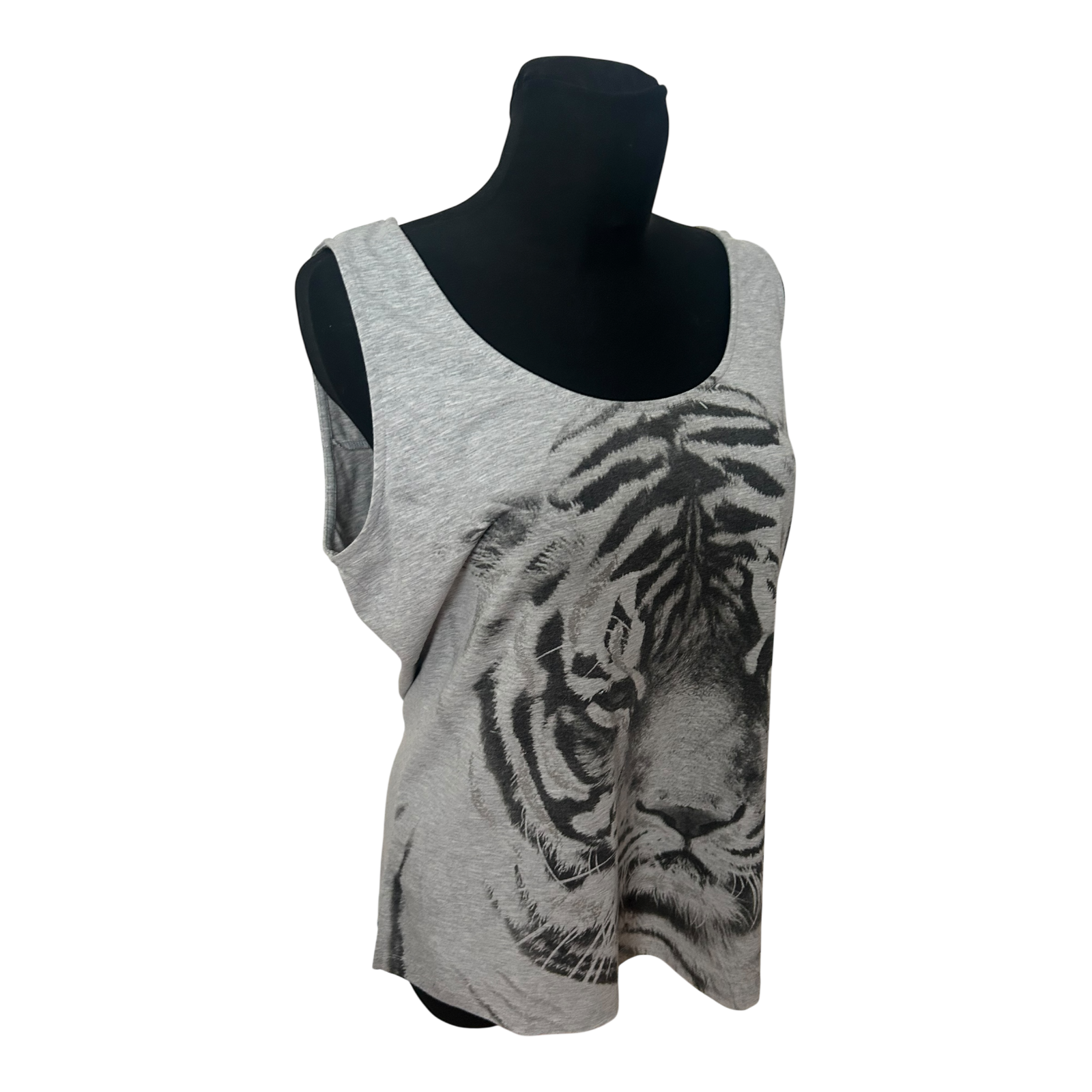 Yessica Shirt Damen Gr L Grau Tiger Print Viskose Sommer Longtop