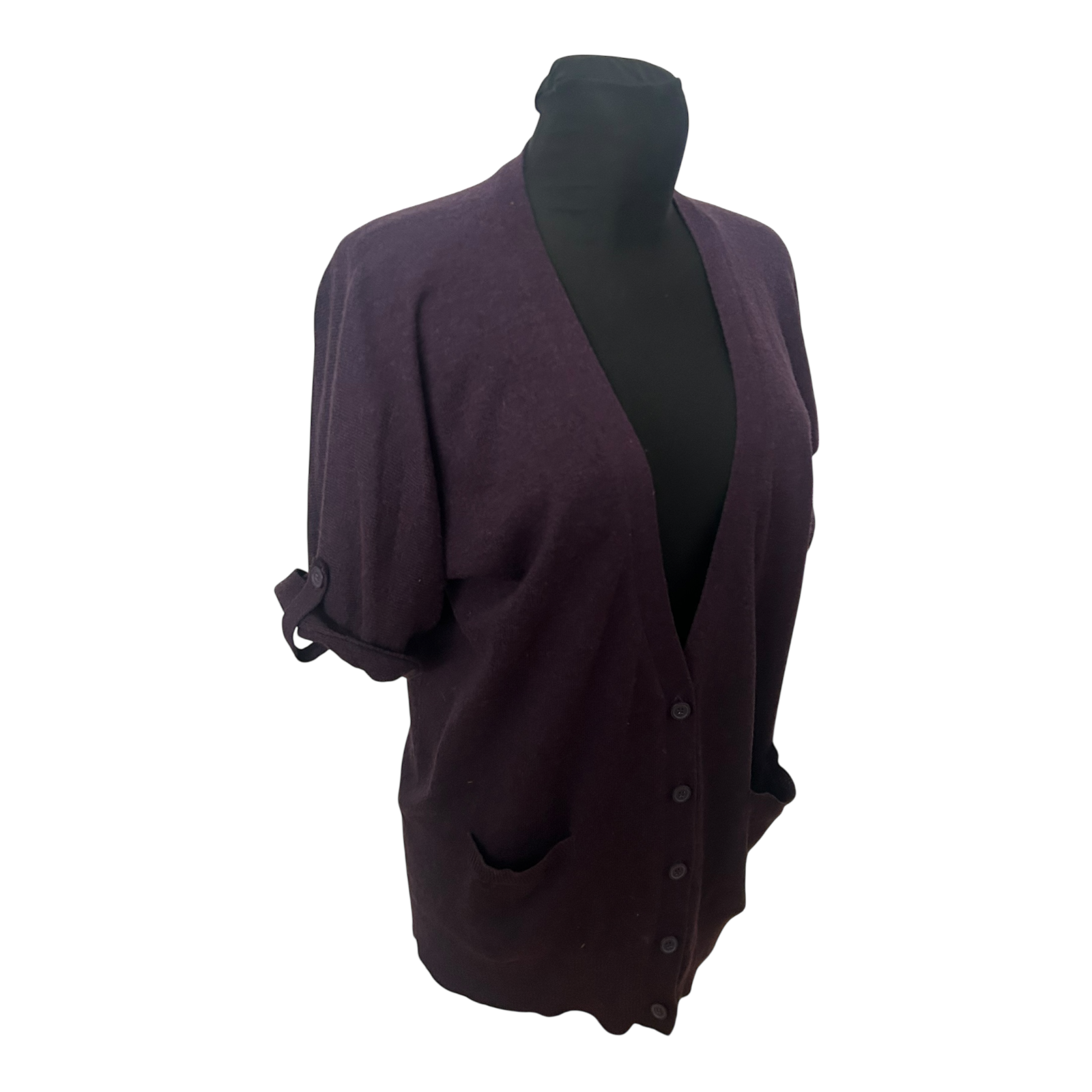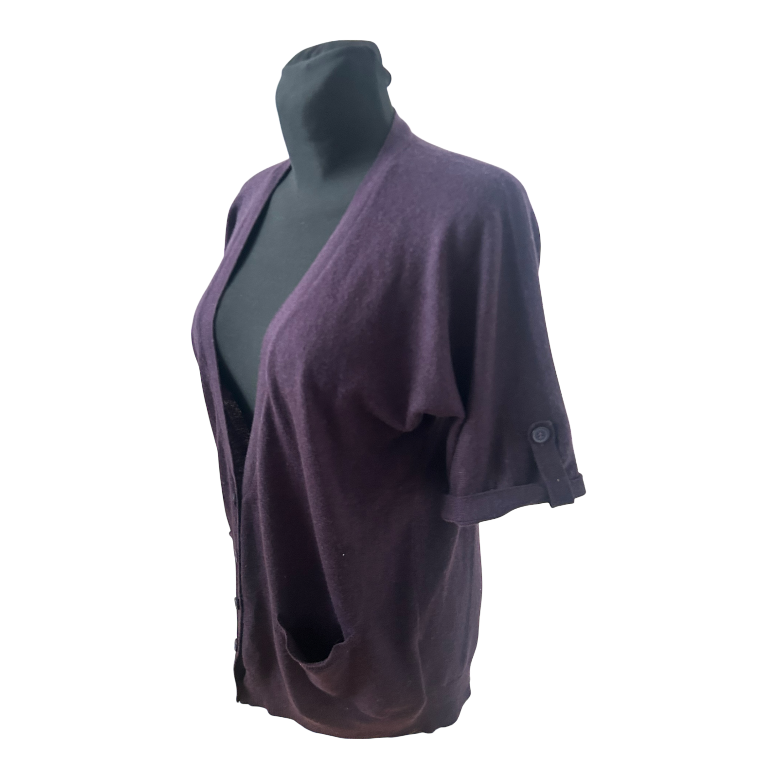 Yessica Strickjacke Damen M Dunkelviolett Kurzarm V Ausschnitt Taschen