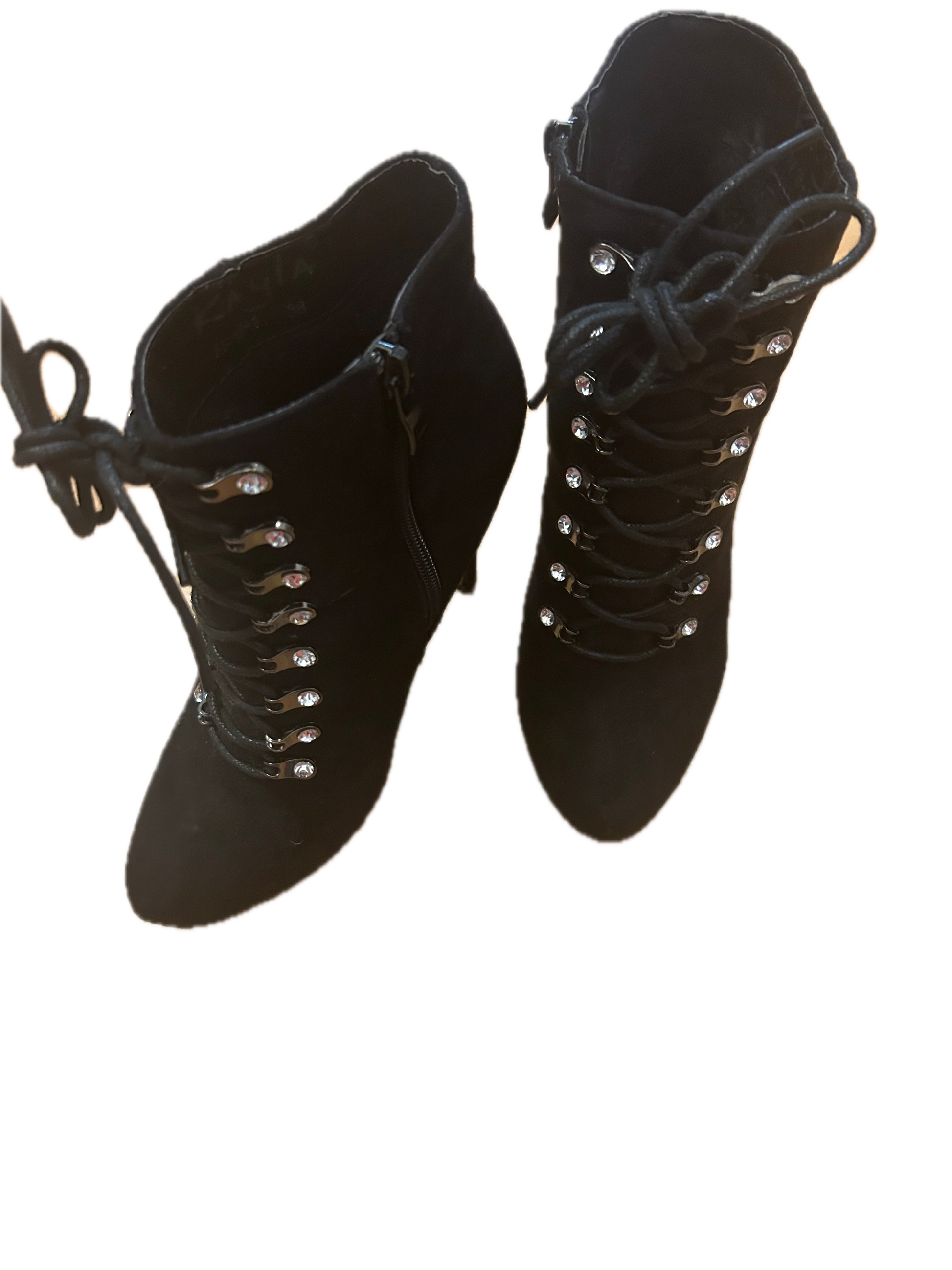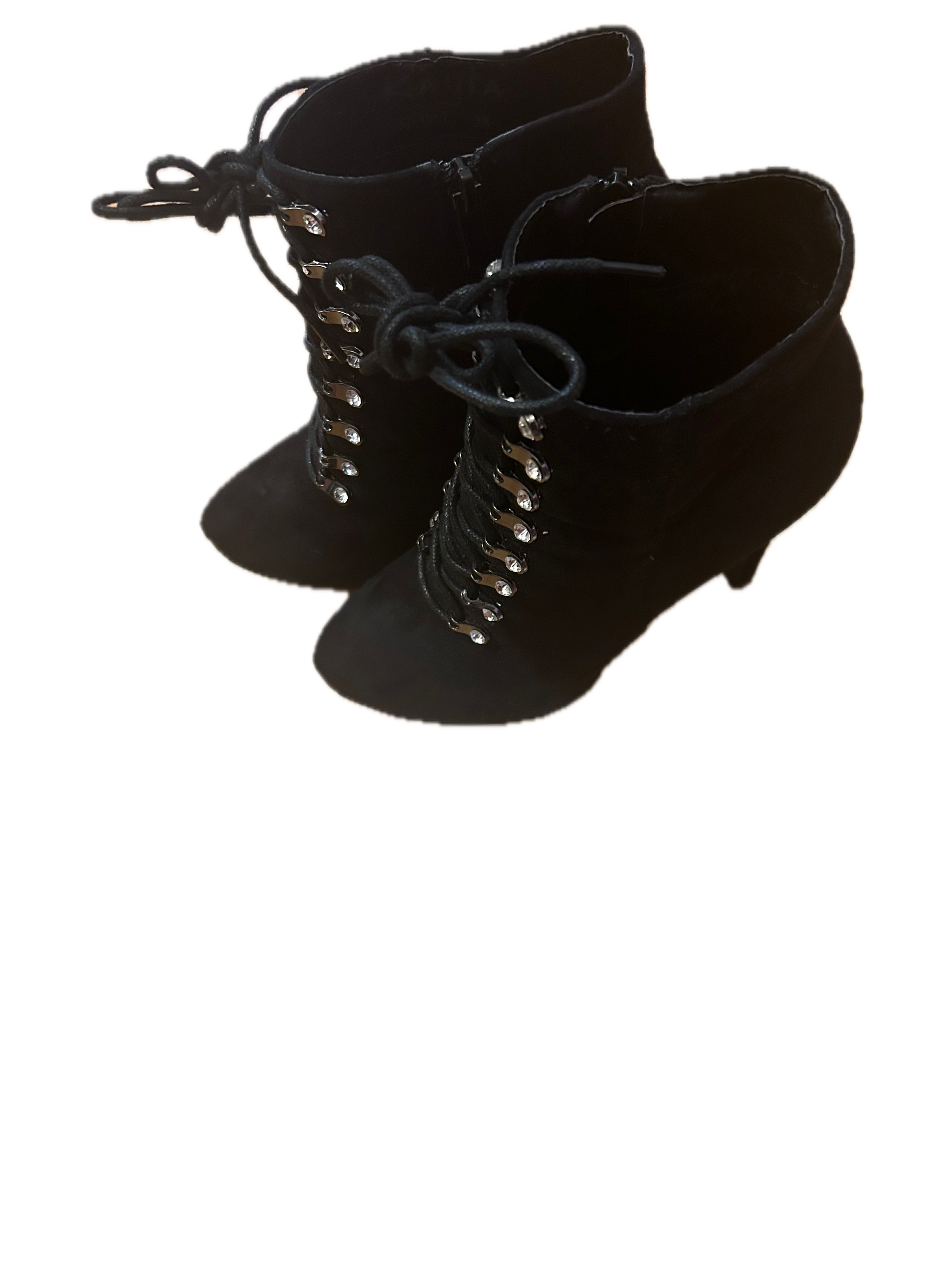 Die Kayla Stiefelette in Schwarz, Größe 38, vereint Eleganz und Komfort. Das schlichte Design passt zu vielen Outfits, während der Blockabsatz und der seitliche Reißverschluss Stabilität und einfachen Einstieg bieten. Ideal für modischen Minimalismus.