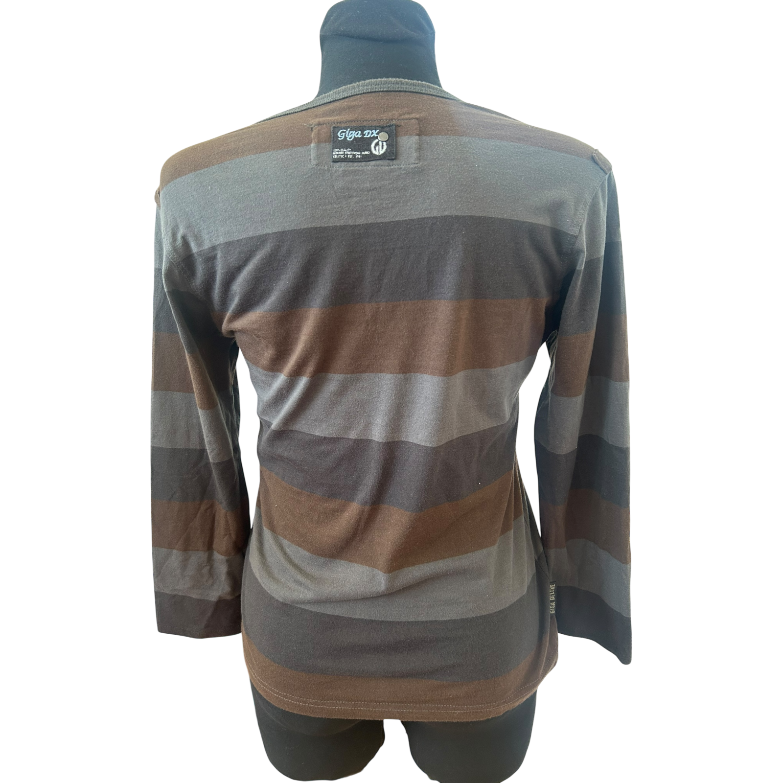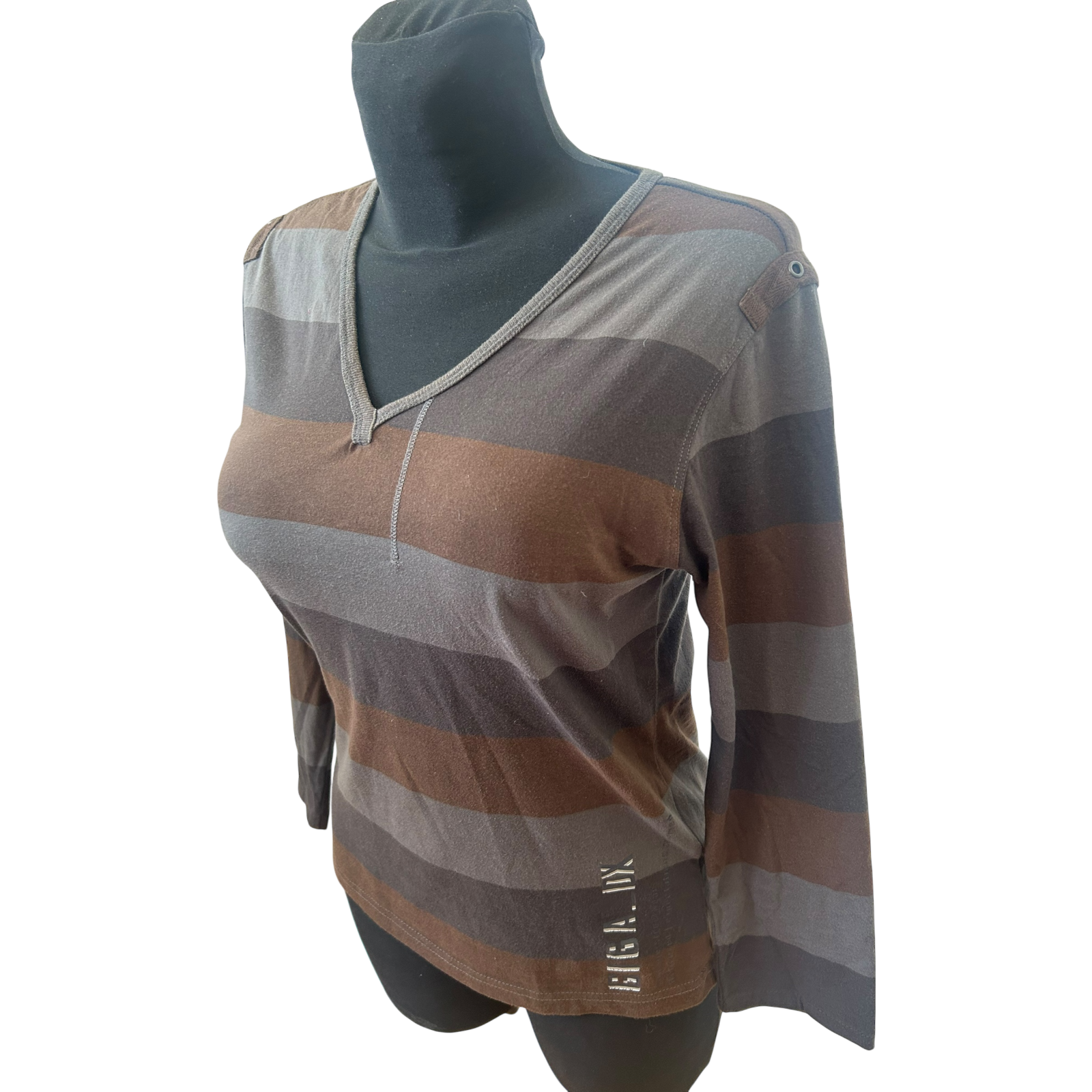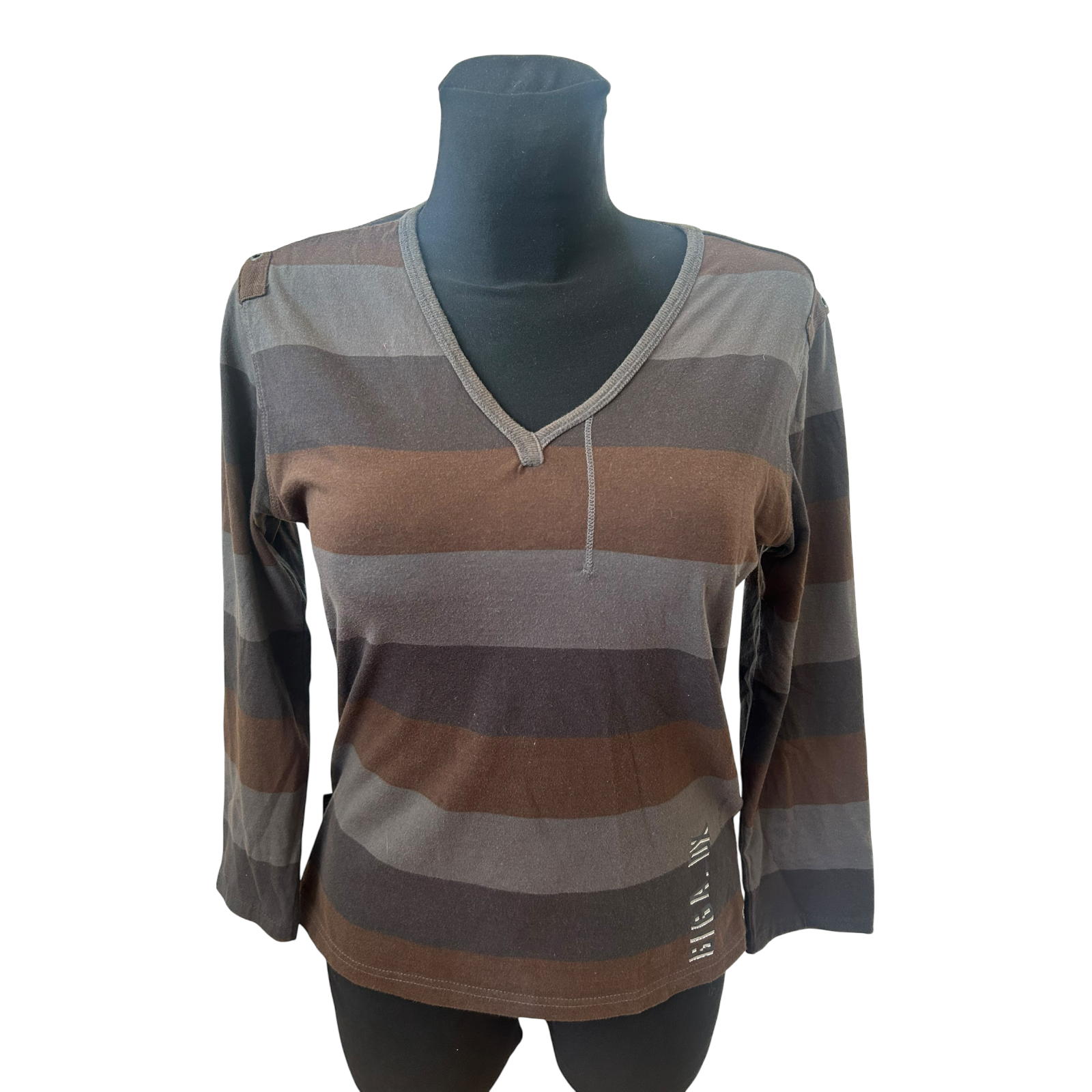 Killtec Giga DX Damen Shirt Gr 40 Braun Grau Gestreift 3/4 Arm Baumwolle