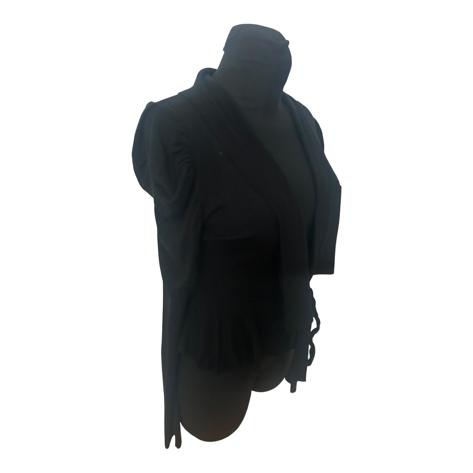 Laetitia Damen Cardigan Gr 40 Schwarz Viskosemix Bindegürtel Puffärmel