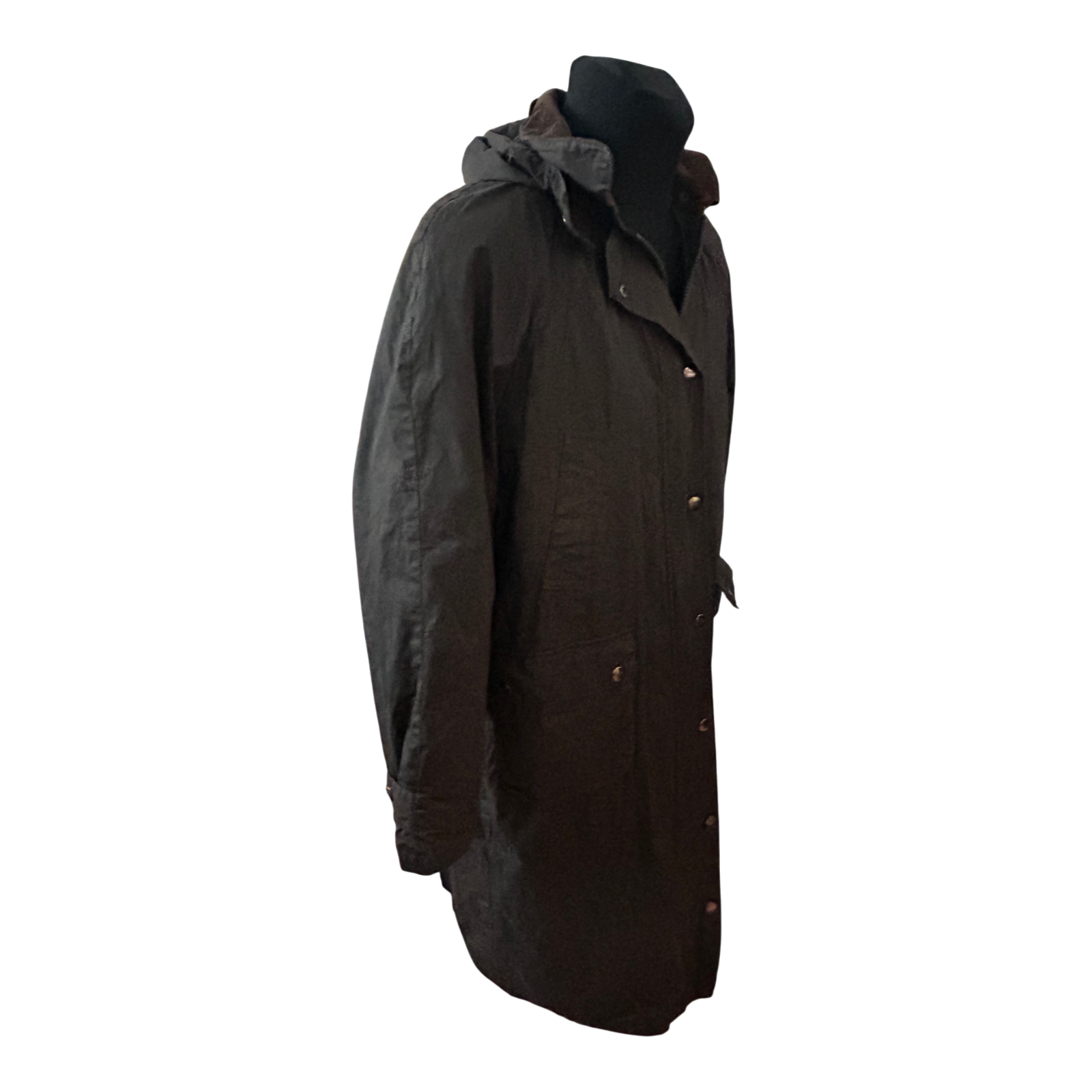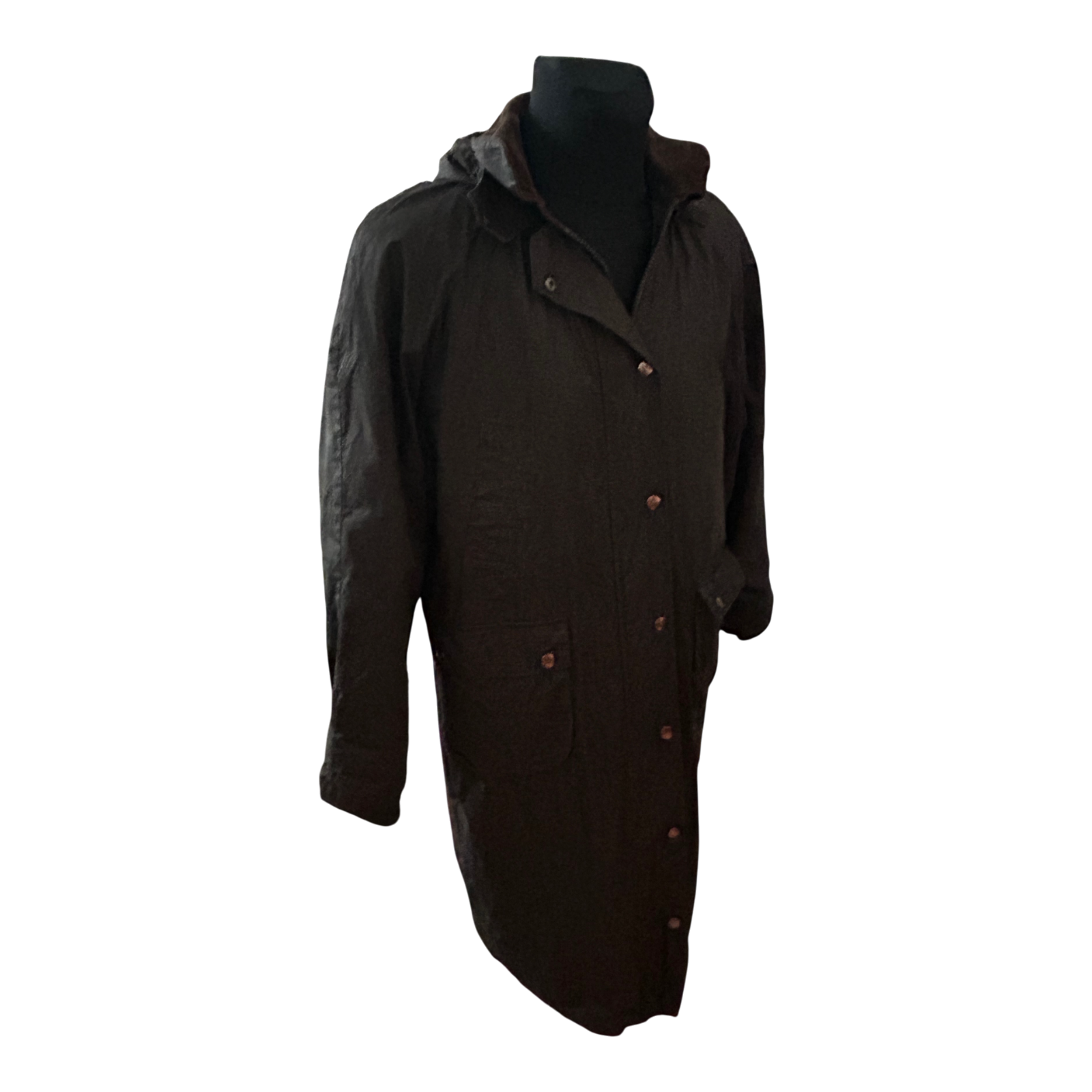 Die Größe ist L. Die Brustweite beträgt ca. 60 cm, die Ärmellänge ca. 68 cm und die Gesamtlänge ca. 118 cm. Ein praktischer, robuster Mantel für Outdoor-Aktivitäten, Spaziergänge, Reiten oder den Alltag bei kühlerem Wetter.