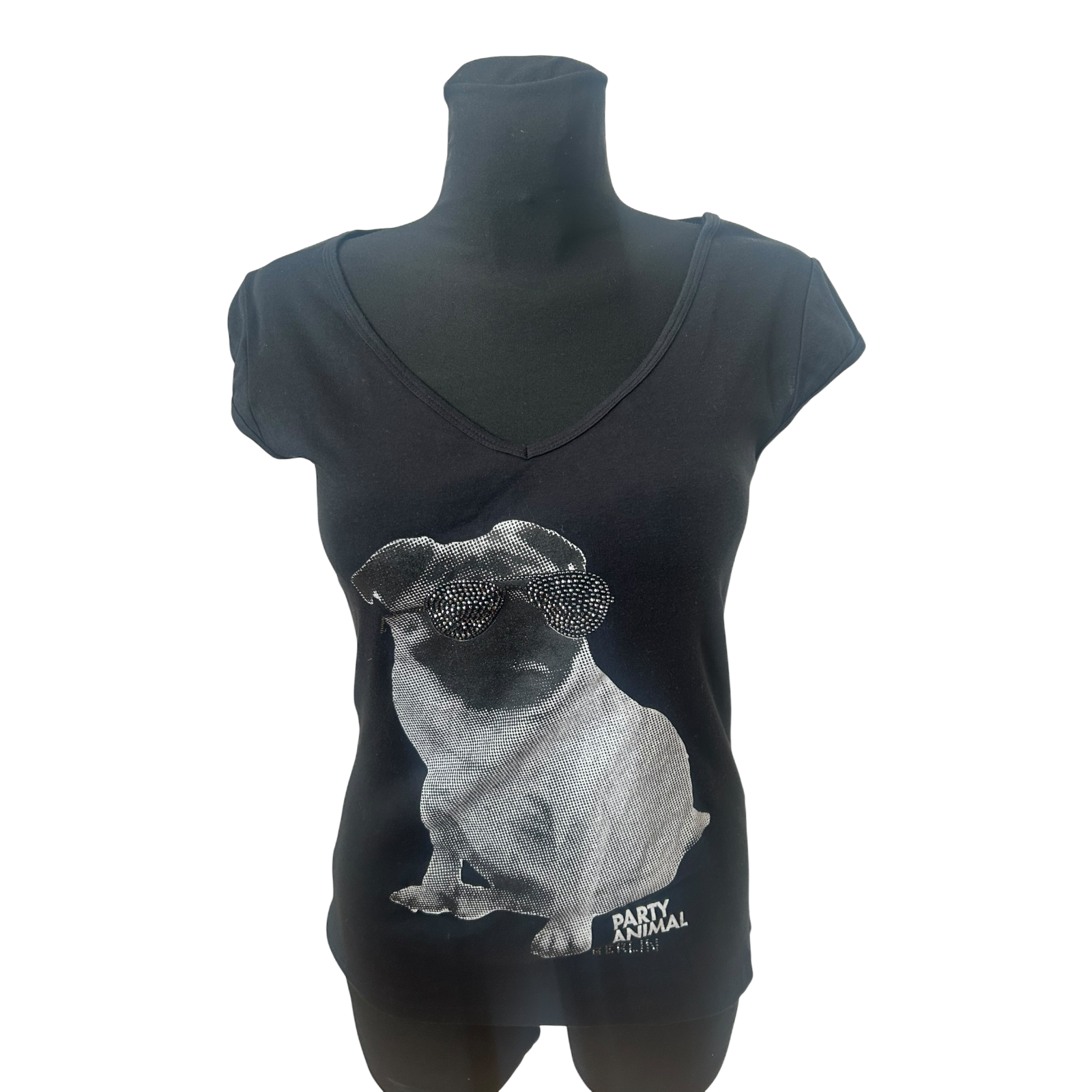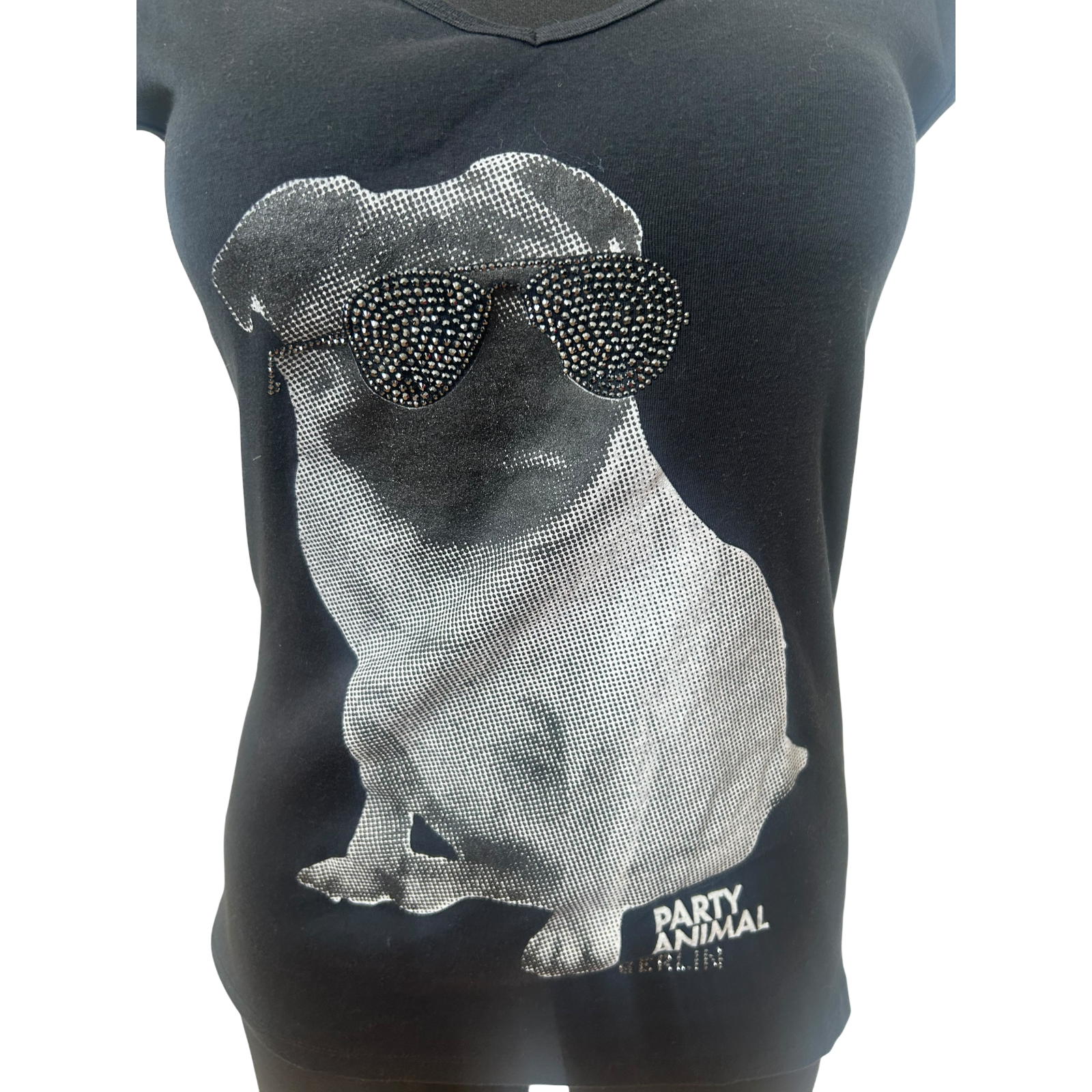 - Besonderheiten: Mops-Print mit Strassstein-Sonnenbrille, Schriftzug Party Animal Berlin,