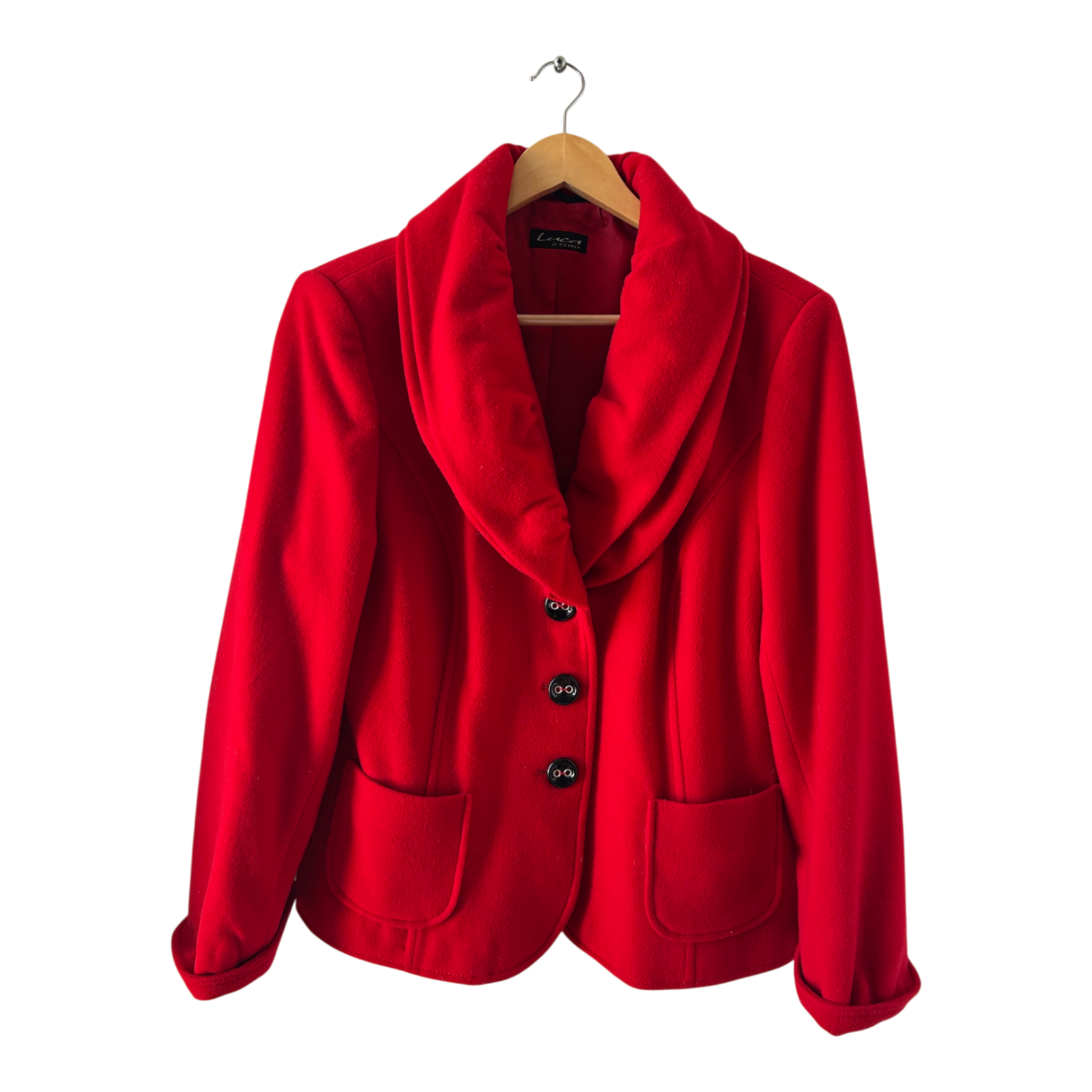 Edle Damenjackevon Luca di Firenze in Größe 44 in leuchtendem Rot. Das hochwertige Material aus 60 % Schurwolle, 20 % Kaschmir und 20 % Polyamid verleiht dem Stück eine exklusive Optik und hohen Tragekomfort. Das Futter aus 100 % Acetat sorgt für eine glatte, angenehm zu tragende Innenseite.