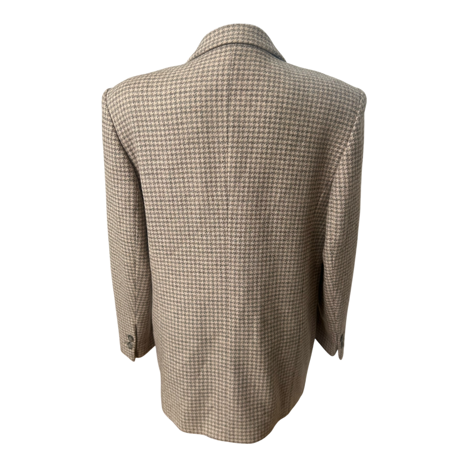 Dieser besondere Vintage-Blazer von Madeleine in Größe 42 ist ein echtes Statement-Stück mit klassischer Eleganz. Das hochwertige Obermaterial aus 50 % Schurwolle, 30 % Alpaka und 20 % Polyester sorgt für eine warme, strukturierte und sehr edle Optik. Das feine Hahnentrittmuster in einem zarten Rose-Grau wirkt außergewöhnlich stilvoll und dezent zugleich. Der doppelreihige Schnitt mit Reverskragen unterstreicht den hochwertigen Vintage-Charakter dieses besonderen Stücks. Innen ist der Blazer vollständig mit 100 % Viskose gefüttert und trägt sich angenehm. Die Brustweite beträgt ca. 52 cm, die Ärmellänge ca. 60 cm und die Gesamtlänge ca. 75 cm. Ein wirklich außergewöhnlicher Fund für Liebhaberinnen hochwertiger Vintage-Mode. 🤍✨