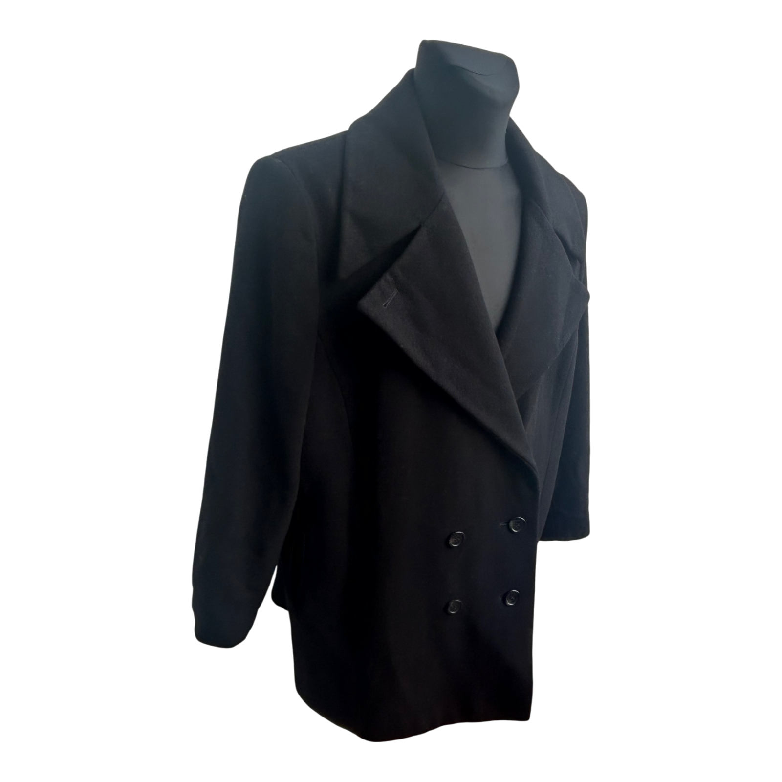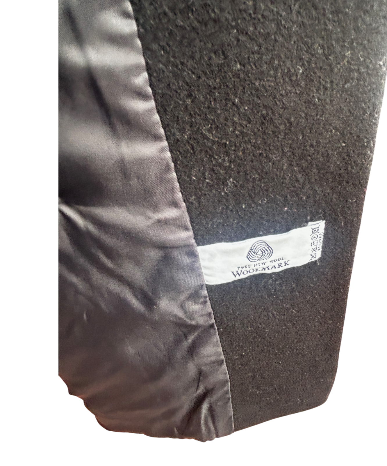 Ein klassischer und warmer Herrenmantel in Größe 52, gefertigt aus 100% Wolle mit einem glatten Innenfutter aus 100% Polyester. Der Doppelreiher wirkt elegant und zeitlos, ideal für kühle Tage und die Winterzeit. Die Farbe ist ein tiefes Schwarz und lässt sich vielseitig kombinieren. Der Mantel trägt sich angenehm und hochwertig und ist ein schönes Vintage Stück mit klarer Linienführung. Erwähnenswert sind die Maße: Die Brustweite beträgt 64 cm, die Ärmellänge 62 cm und die Gesamtlänge 86 cm. Ein stilvoller Begleiter für Alltag und Business.