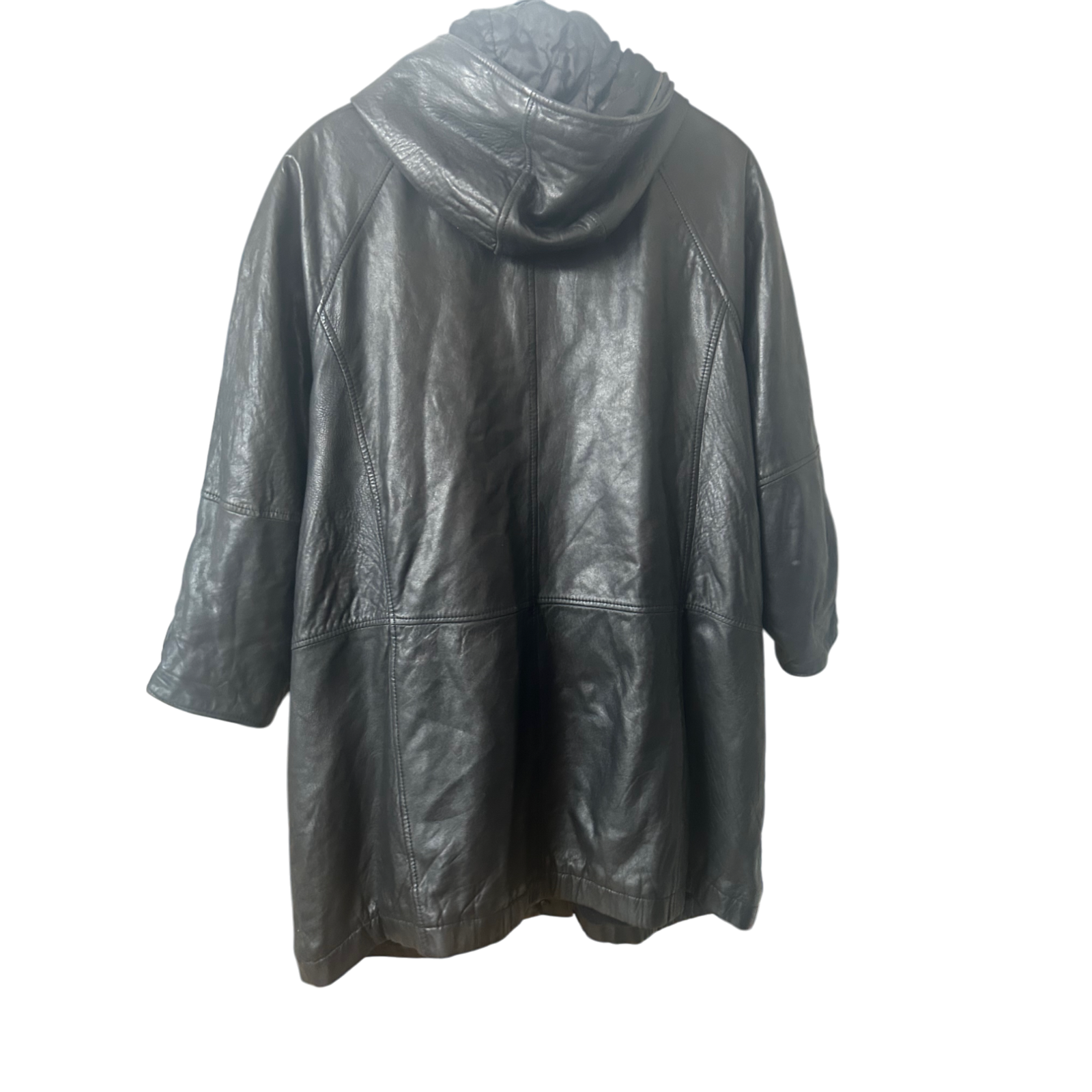 Schwarze Echtlederjacke von Marco Pecci in Größe 42 mit schönem, glockigem Schnitt. Die Jacke ist gefüttert mit warmem Stoff, hat Schulterpolster sowie weite, etwas kürzere Ärmel, was ihr eine besondere Note verleiht. Mit einer Brustweite von 56 cm, einer Länge von 82 cm und einer Ärmellänge von 52 cm sitzt sie locker und elegant 🧥.