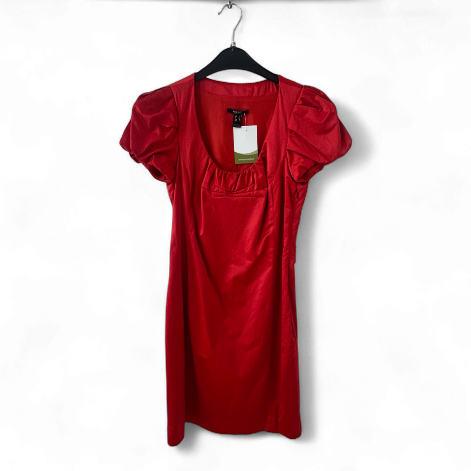 Elegantes Kleid von MNG Suit in kräftigem Rot mit leichtem Satin-Schimmer 💃. Die kurzen Puffärmel, der feminine Ausschnitt und der taillierte Schnitt machen es zum Hingucker. Gefüttert und mit seitlichem Reißverschluss. Ideal für festliche Anlässe, Dinner oder Events. Brustweite ca. 38 cm, entspricht Größe S. Sehr guter Zustand.