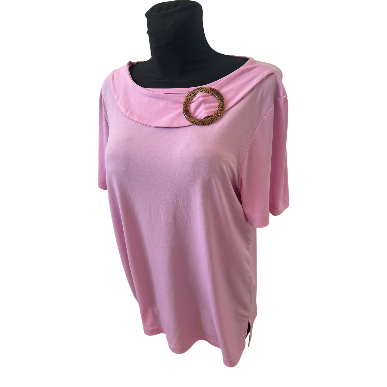 Auffälliges rosafarbenes Shirt von Mondo Italia in Größe M mit dekorativer großer Schnalle im etwas dunkleren Ton im Brustbereich. Das besondere Detail verleiht dem Shirt eine elegante und zugleich moderne Ausstrahlung und macht es zu einem echten Hingucker ✨