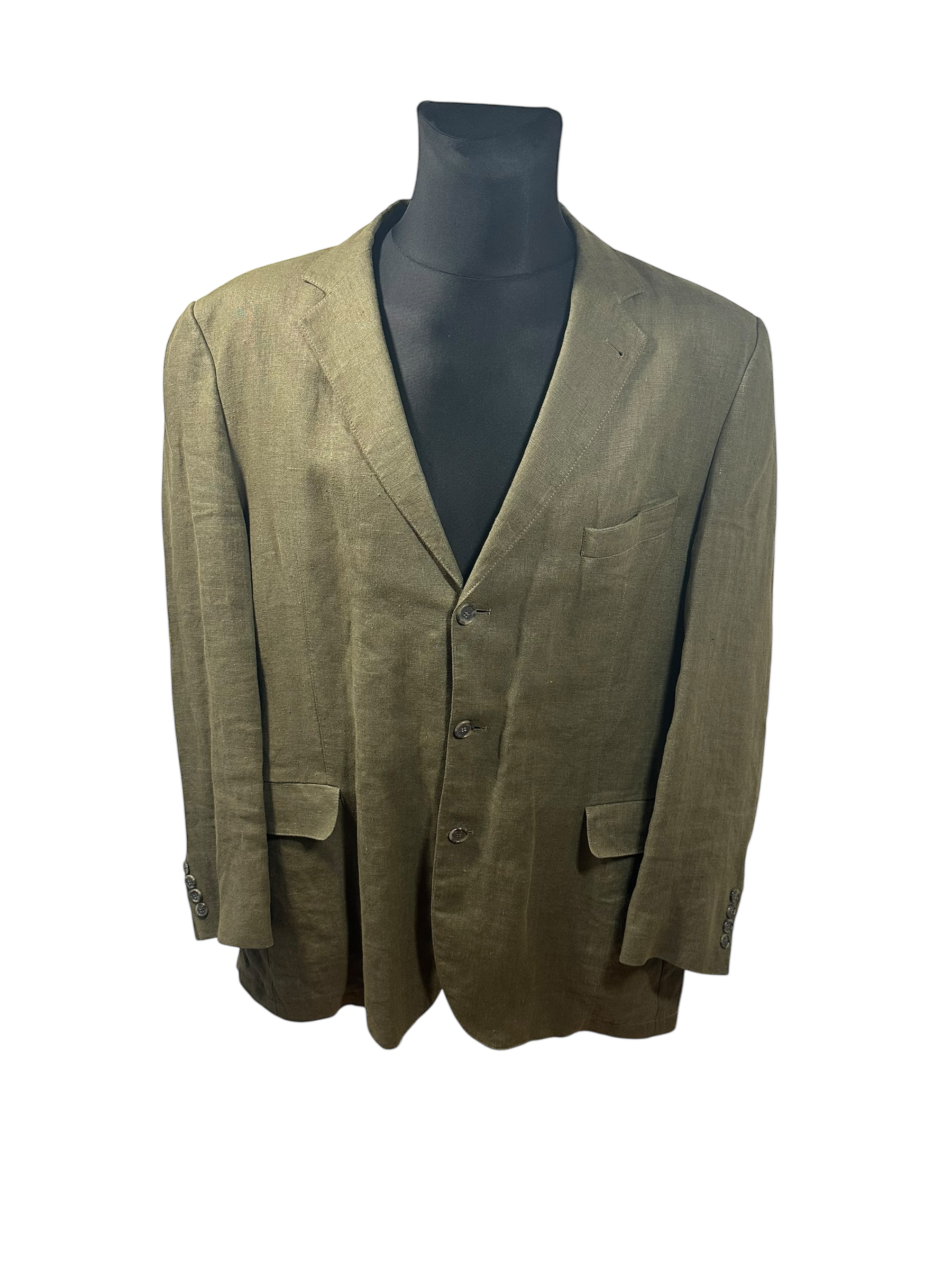 Montego Sakko Herren L/XL Olivgrün Leinen Sakko Sommer Klassisch Einreiher