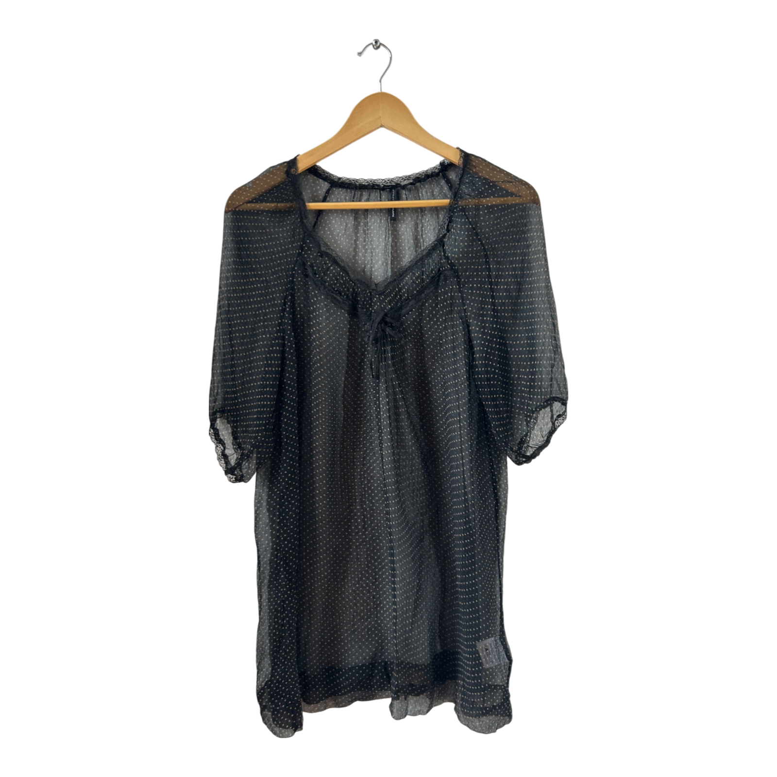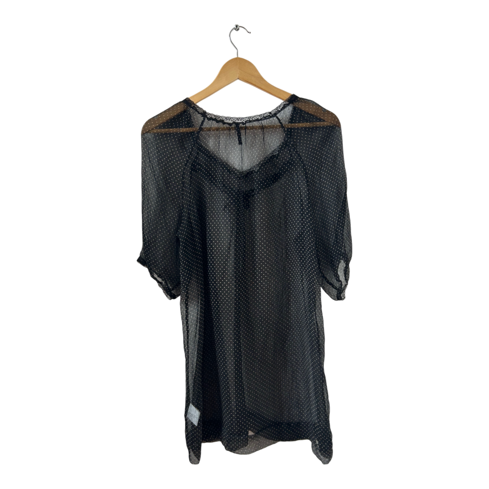 Naf Naf Bluse schwarz Seide transparent Punkte Gr 38 elegant Tunika Boho Sommer
