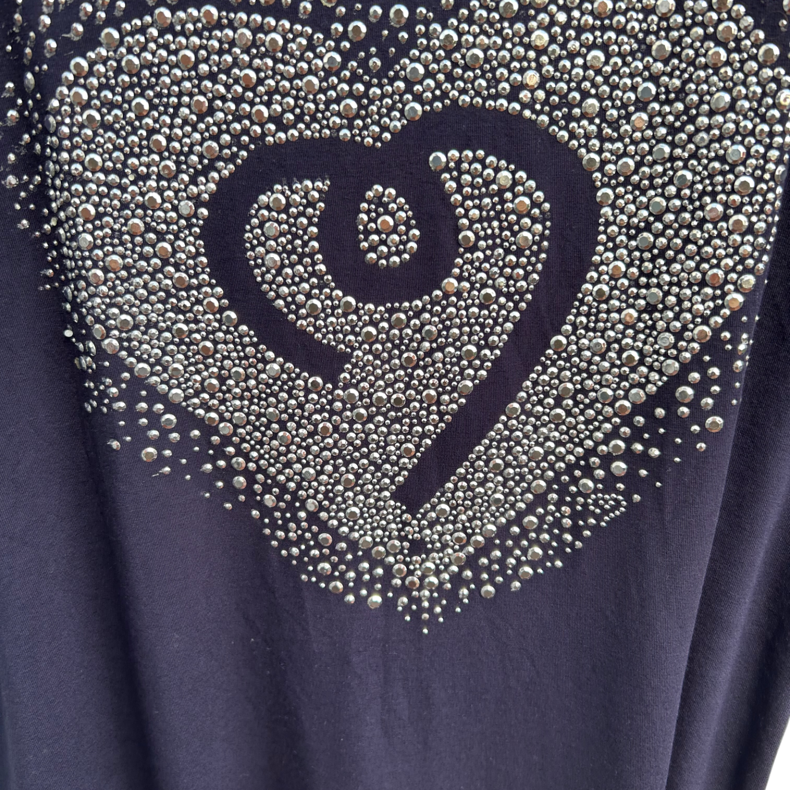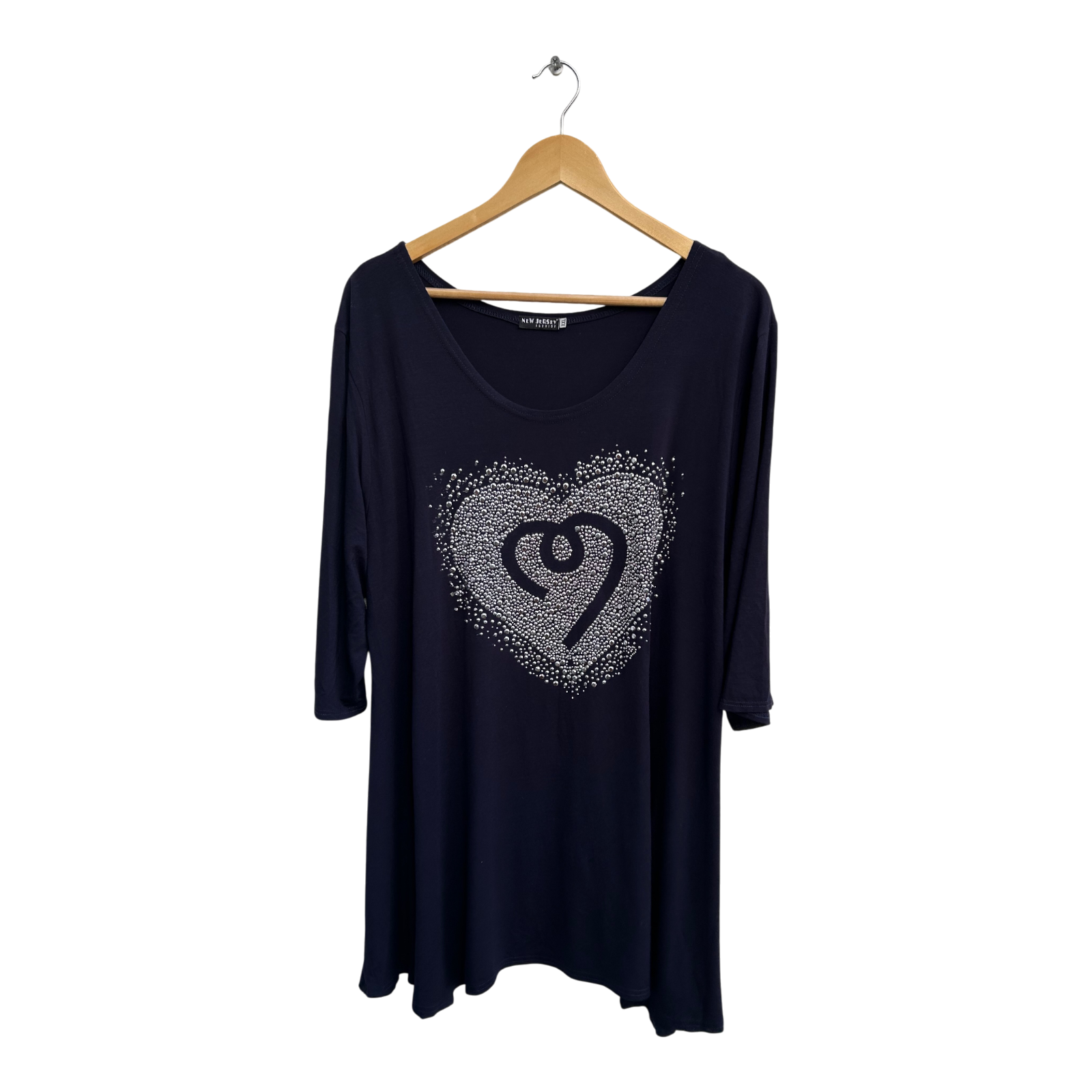 New Jersey Fashion Shirt Damen XXL Dunkelblau Glitzer Herz Nieten Viskose Elegant