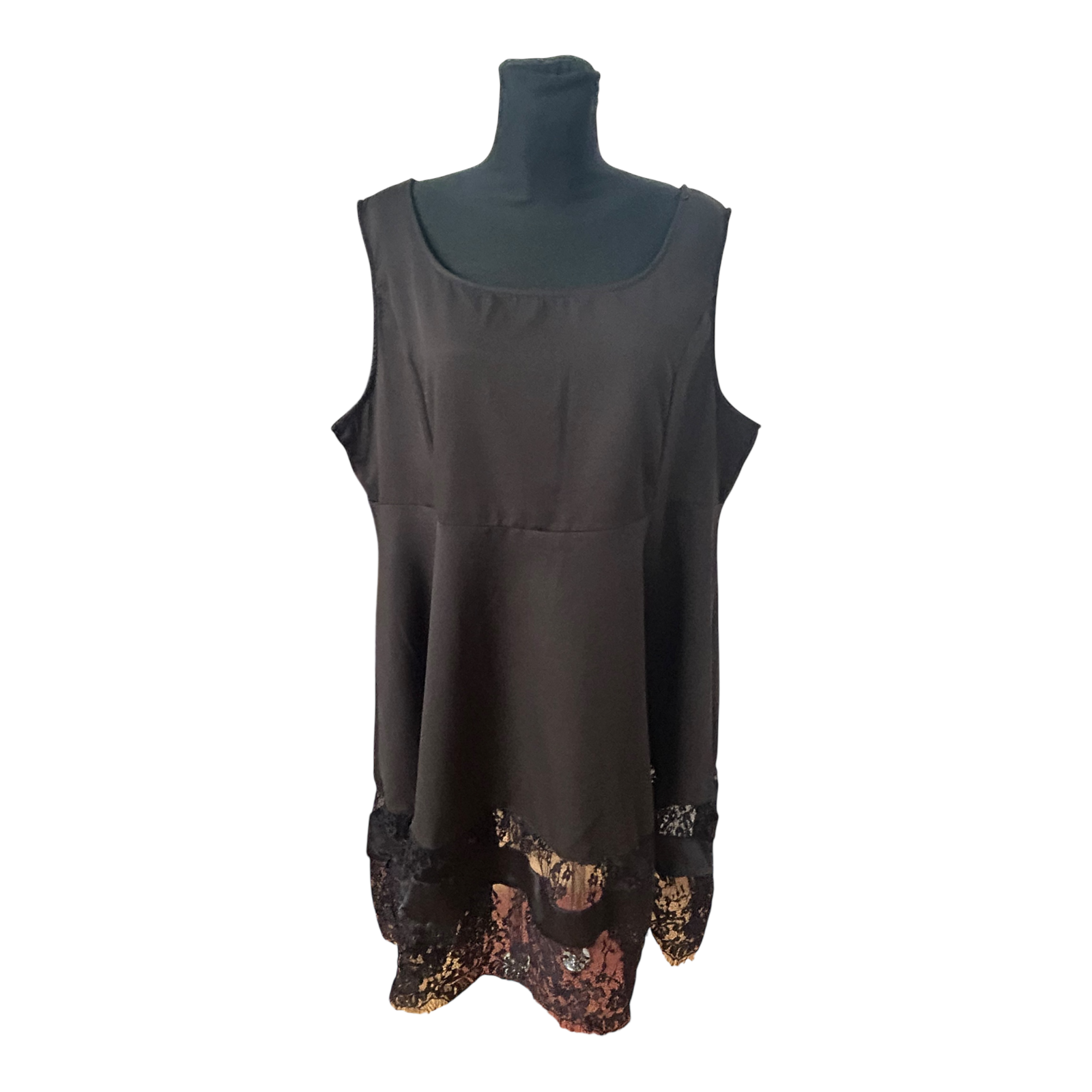 Das schwarze Kleid in Größe 54 von Nextmia überzeugt durch seinen fließenden Schnitt und den femininen Spitzenabschluss am Saum 🖤